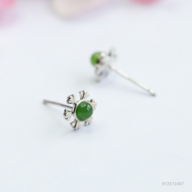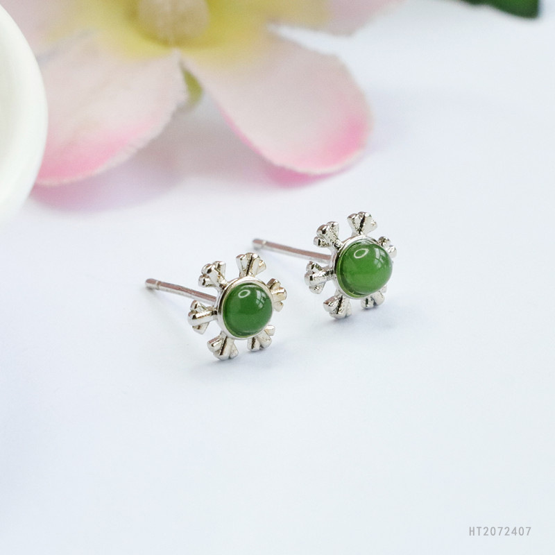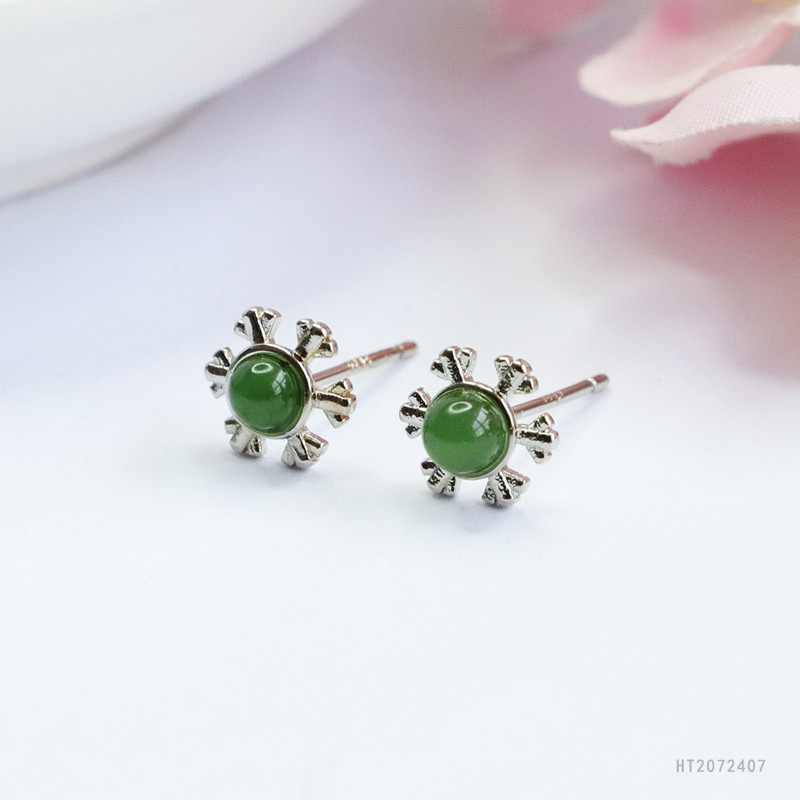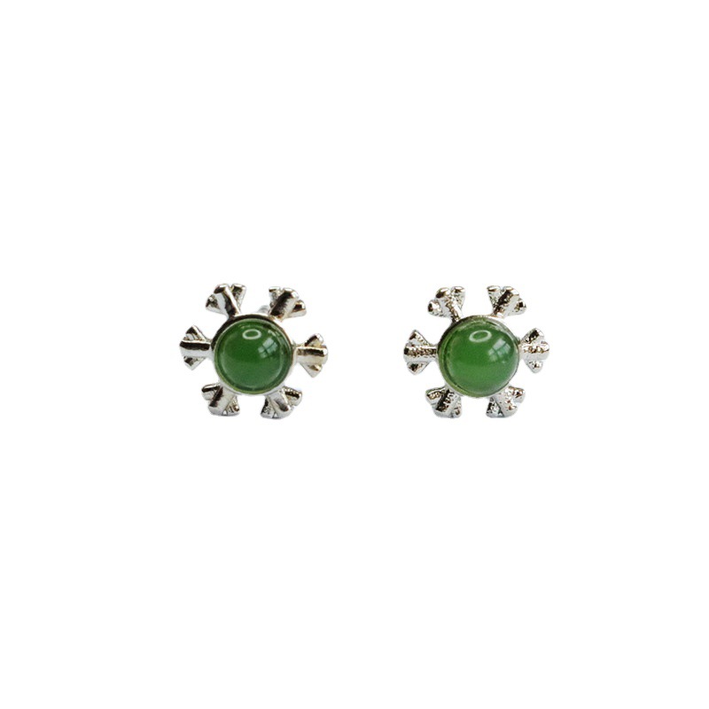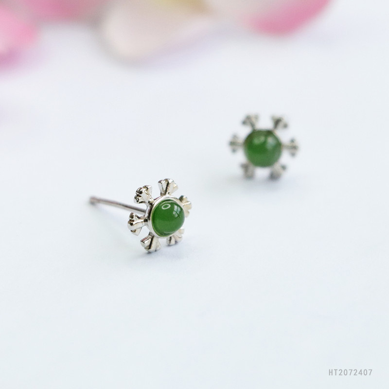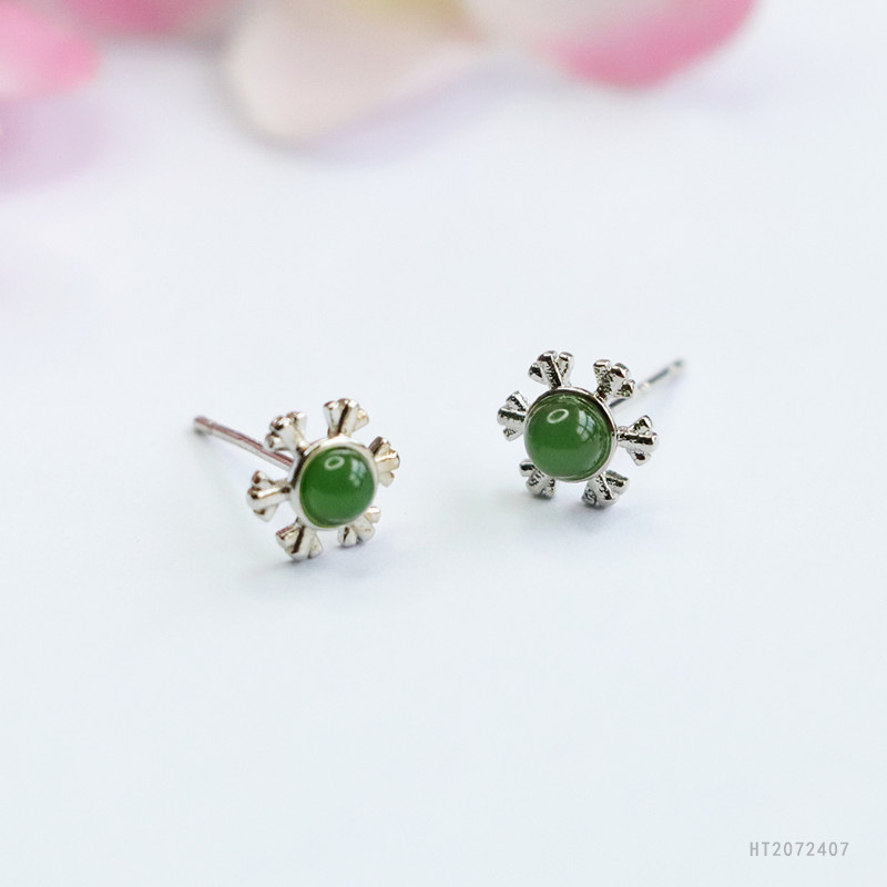 Серьги с серебряными иголками из яшмы, шестистворчатая снежинка, модель HT2072407