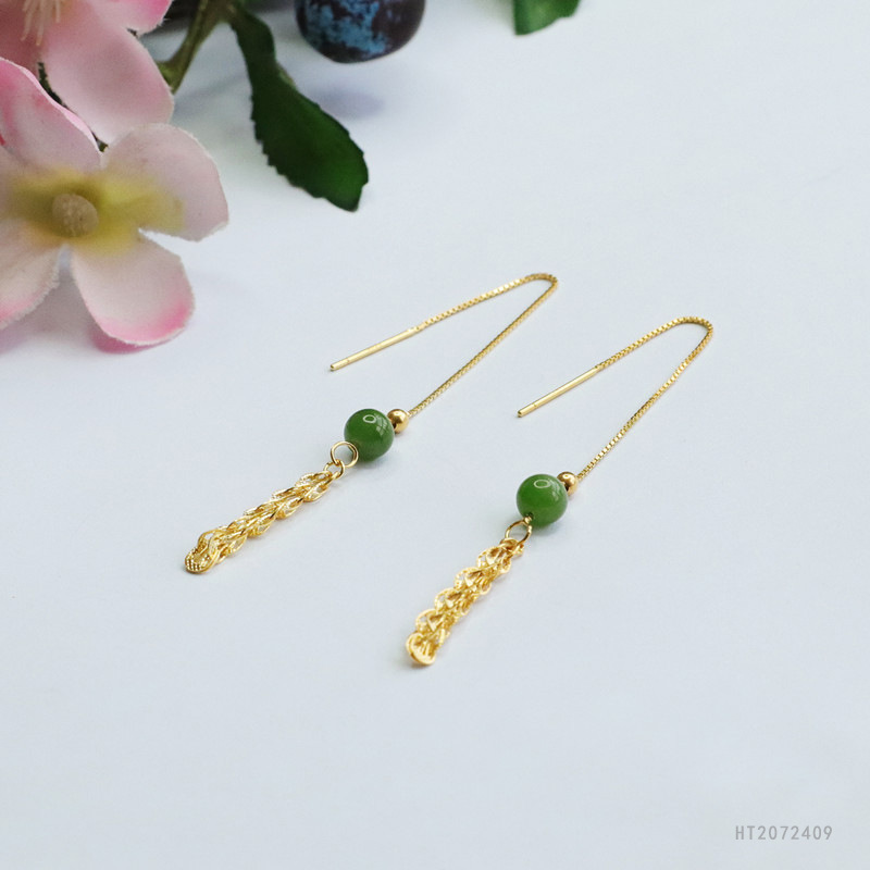 Jianyu S925 Серебряный натуральный нефрит Hetian Ушная линия из 18-каратного золота яшма фабрика ушных крючков Fengwei от имени HT2072409