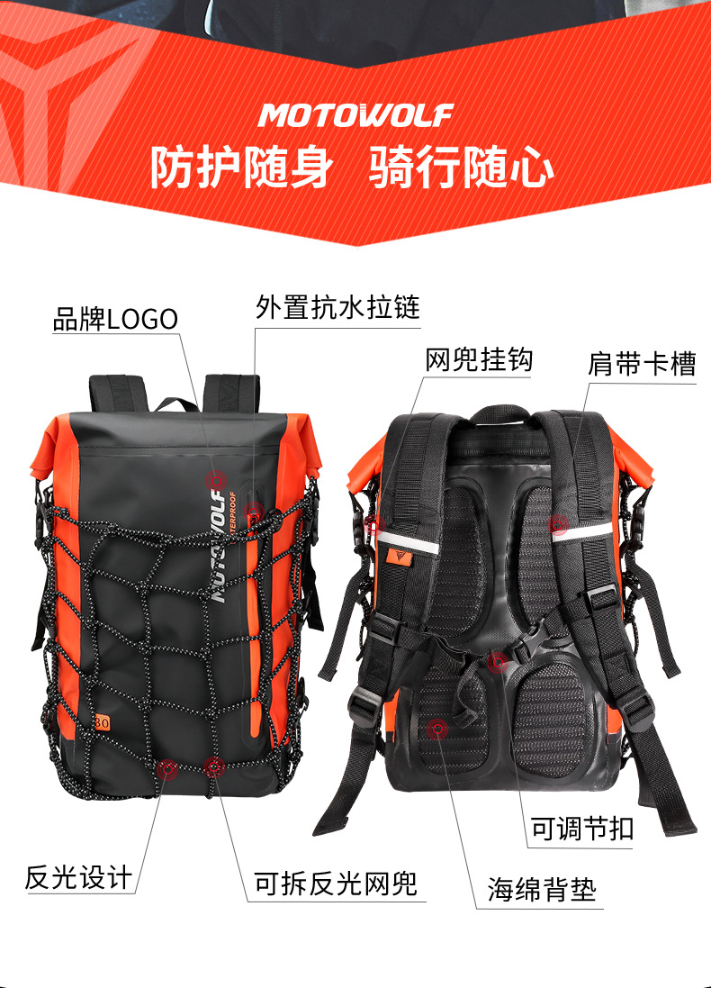 Мотокросс Открытый езда Многоцелевой Велоспорт Дорожная сумка Водонепроницаемый портативный рюкзак с Светоотражающий сетчатый карман
