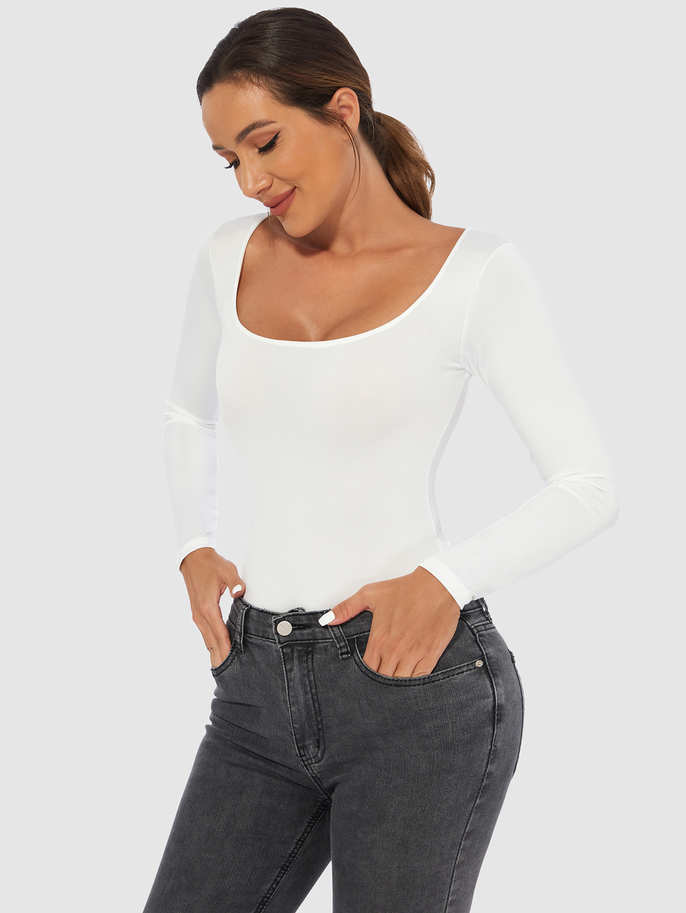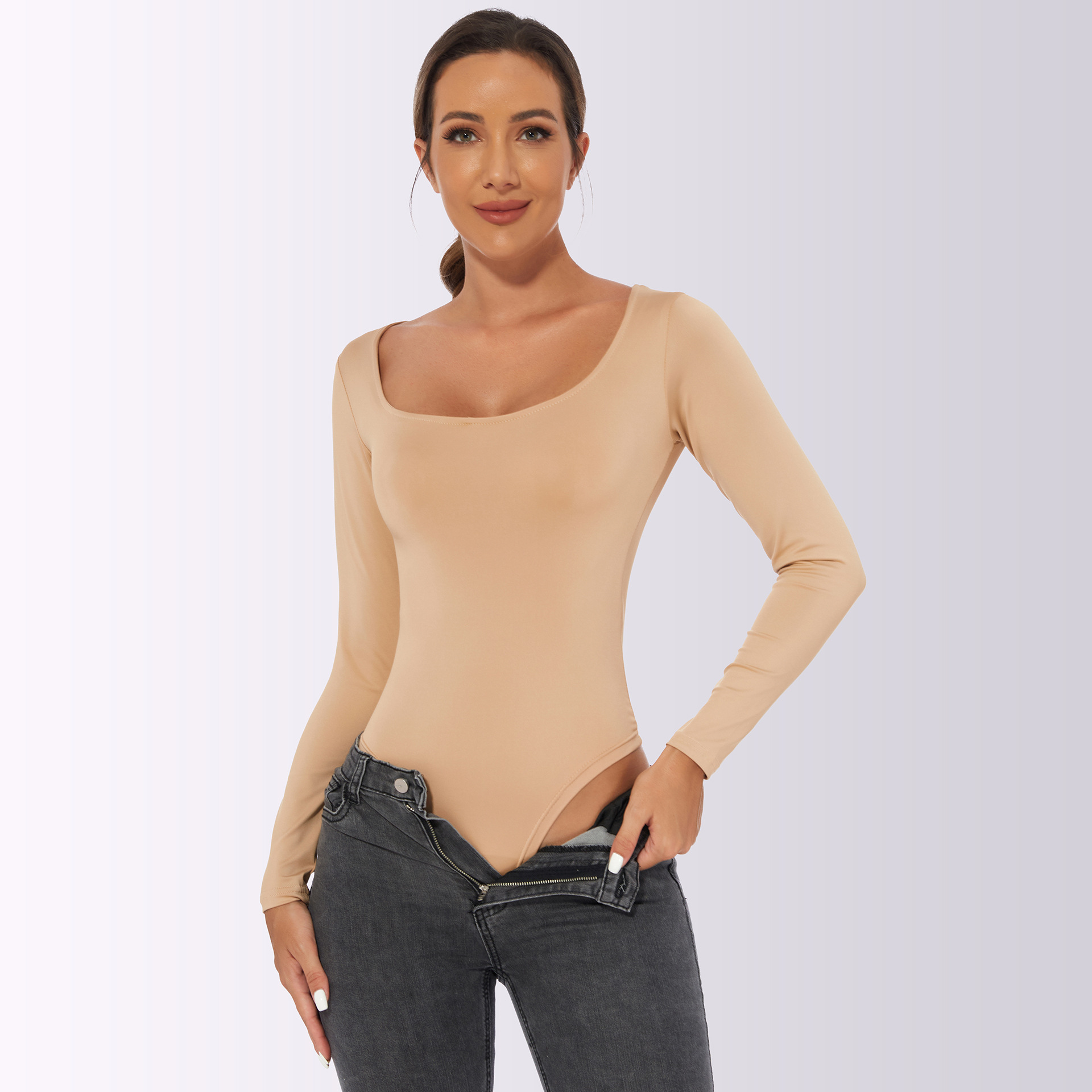 Женская облегающая футболка для внешней торговли Европы и Америки, женский комбинезон с длинными рукавами, Женский Осенний комбинезон, Женский Топ