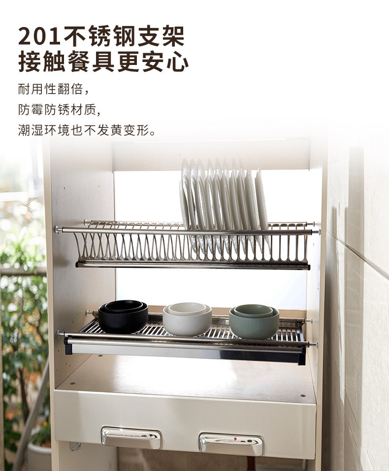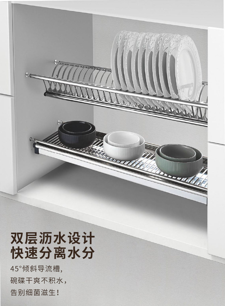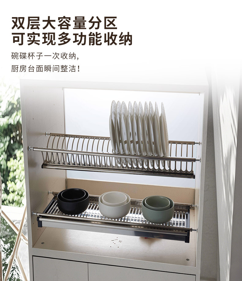 Шкаф Кухонный встроенный двухслойный стеллаж для хранения тарелок Стеллаж для посуды из нержавеющей стали Стеллаж для посуды