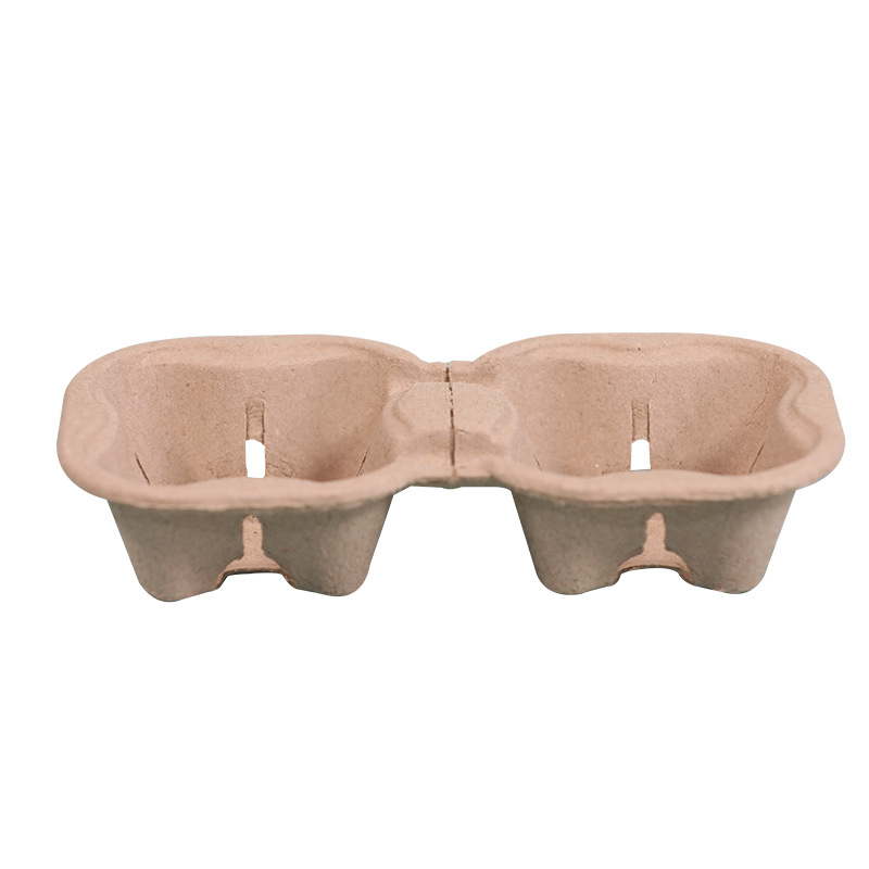 2杯纸浆杯托 咖啡奶茶纸杯托盘 饮料外卖打包可降解两杯托
