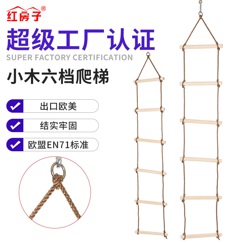Amazon детская Крытая уличная игровая веревочная лестница, аксессуары для подъема, деревянная детская шестиступенчатая лестница