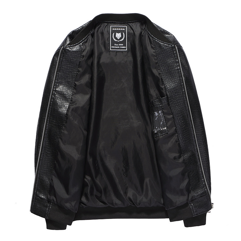2022 Новая Повседневная куртка с Бейсбольным воротником, пальто для среднего и пожилого возраста, тонкая мужская с круглым вырезом, с крокодиловым узором, из искусственной кожи, оптовая продажа