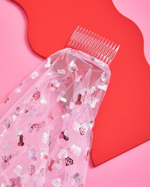 高档网纱包边工艺情趣双层头纱 尺寸80*60cm 透明梳子发饰单身派对用品
