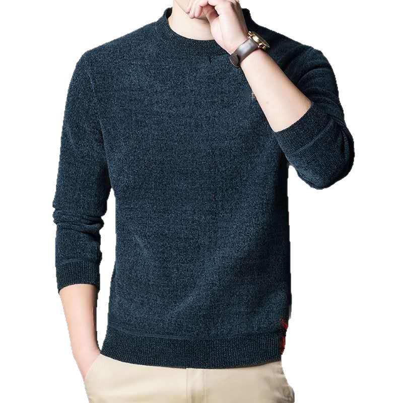 Оптовая продажа в прямом эфире для групповых закупок: вязаный свитер из шенилла для мужчин среднего и старшего возраста, осенне-зимний вышитый свитер, корейская версия для осени и зимы.