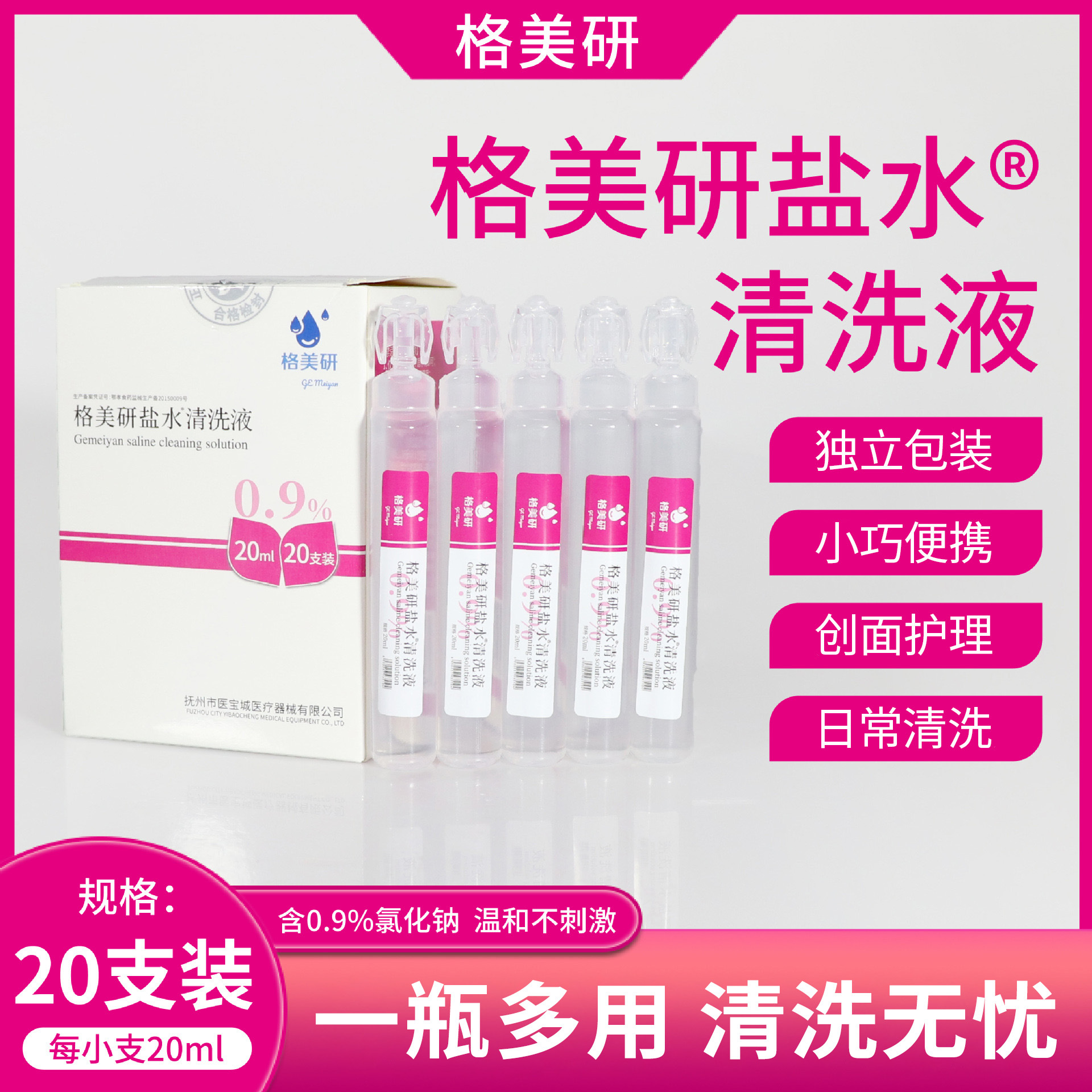 Gemeiyan 0,9% физиологический раствор натрия хлорида, очищающий раствор, физиологический раствор для очистки линз, медицинский, 20 мл, размер оборудования