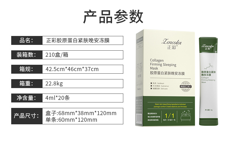 Zhengcai Collagen Good Night Jelly Mask (4gl*20 полосок в коробке); Желеобразная пленка Zhengcai с сублимированной пудрой (4г*20 шт./кор.); Желеобразная пленка Zhengcai для сублимационной сушки (4г*100шт/коробка); Маска для сна с ампулой Zhengcai (3г*100 шт./кор.); Коробка из желейной пленки Zhengcai Lifting and Firming (4 мл * 20 шт./кор.); Коробка для желейной пленки Fangziyan Centella asiatica (4 мл*20 полосок в коробке); Коробка женской коллагеновой желейной маски (4 мл * 20 полосок в коробке); Su Yan — очень омолаживающая и полупрозрачная коробка из замороженной пленки (4 мл*20 шт./кор.)