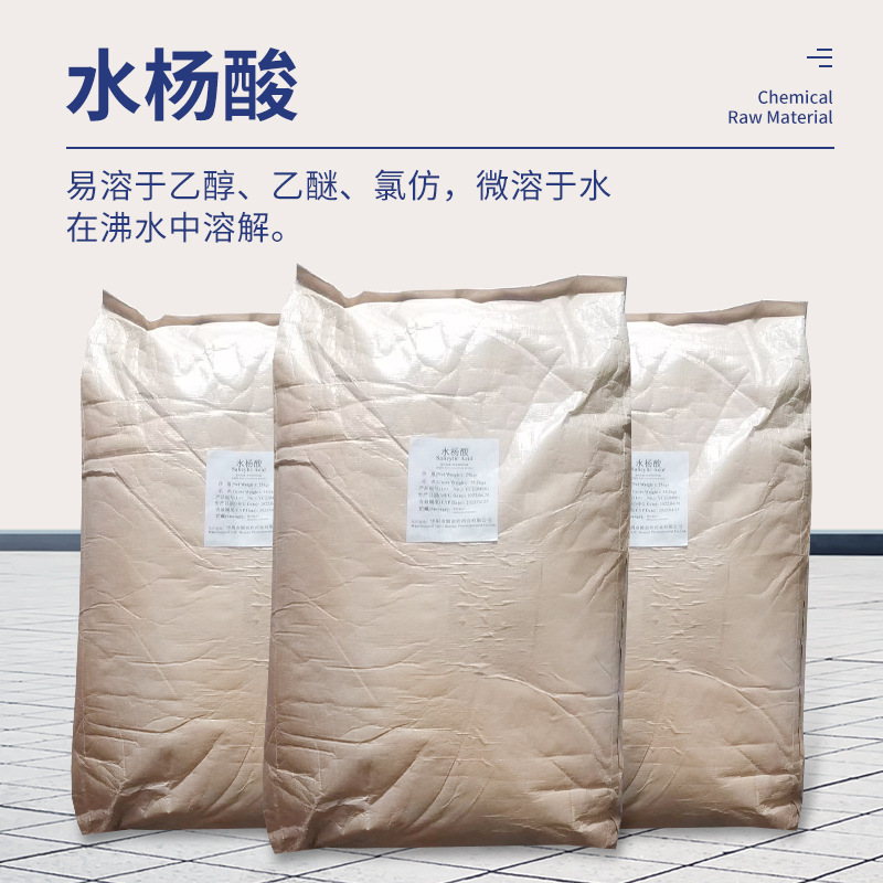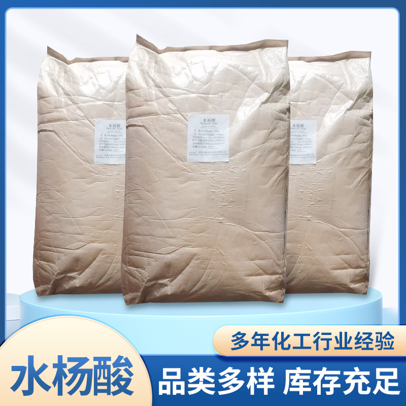 В наличии оптом: промышленный кристаллический порошок салициловой кислоты, пенообразователь, абсорбент, 25 кг/мешок, салициловая кислота