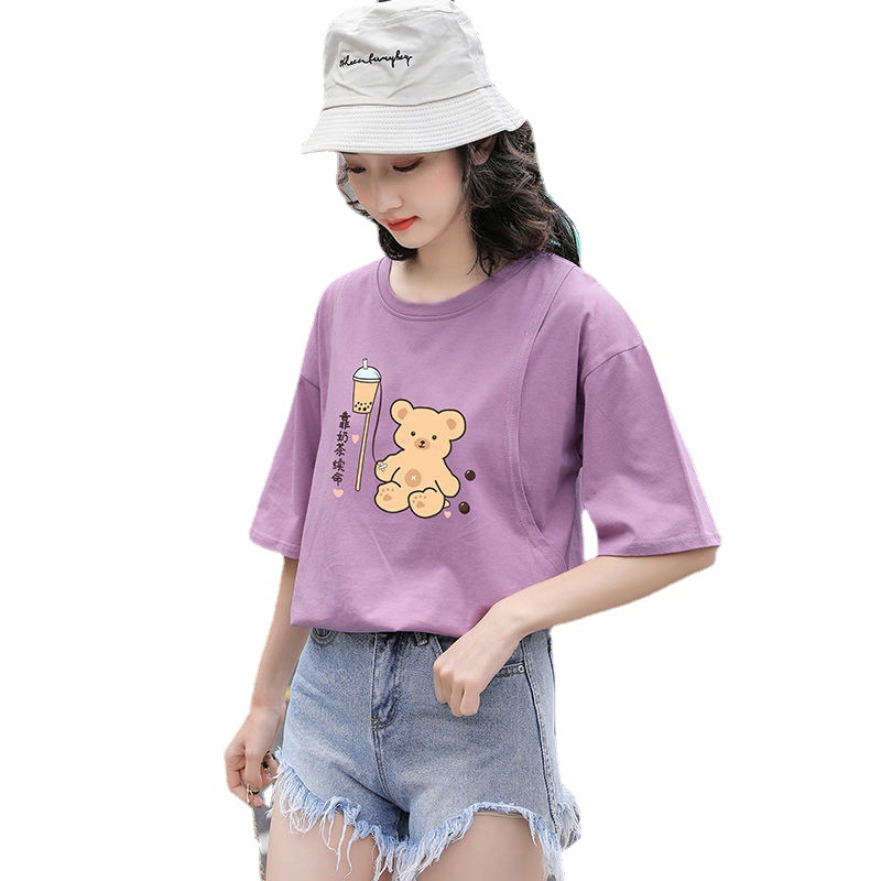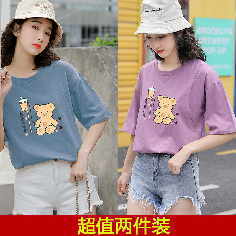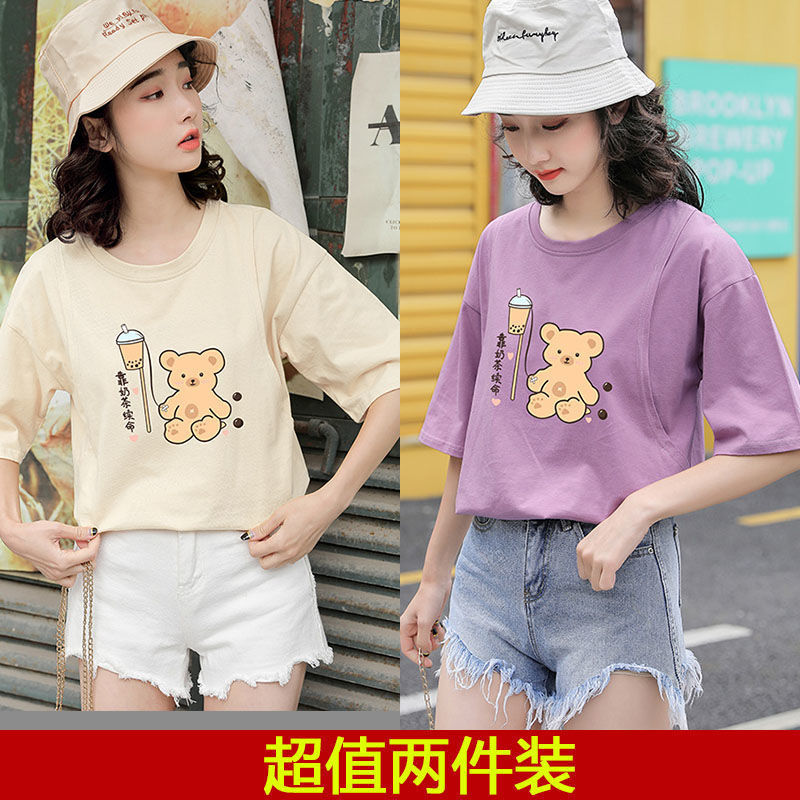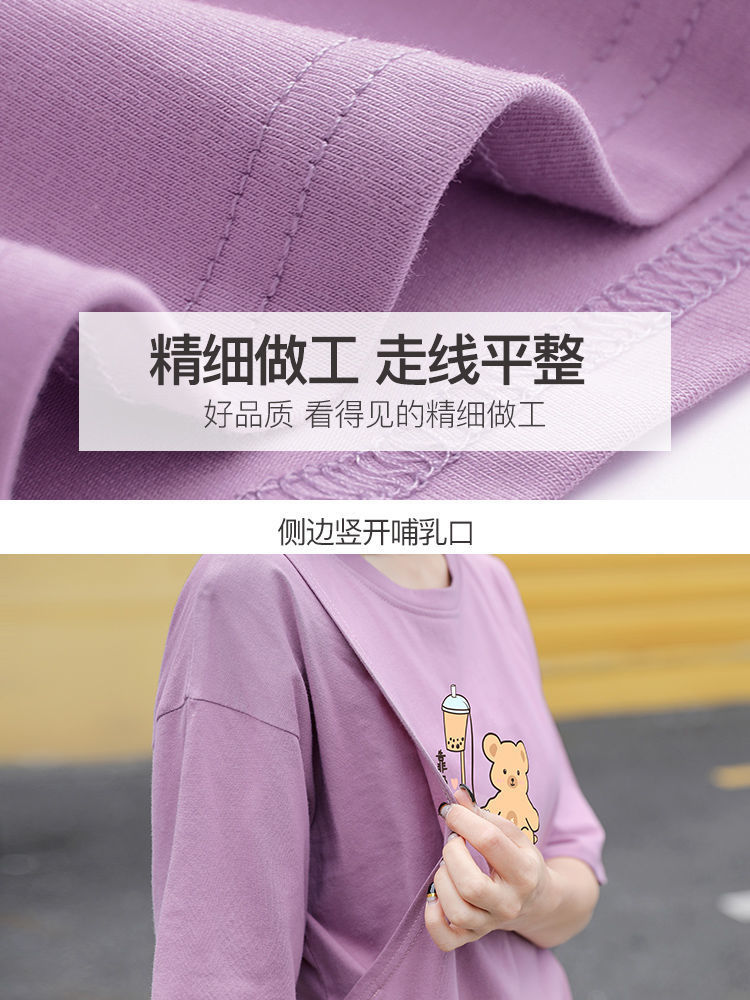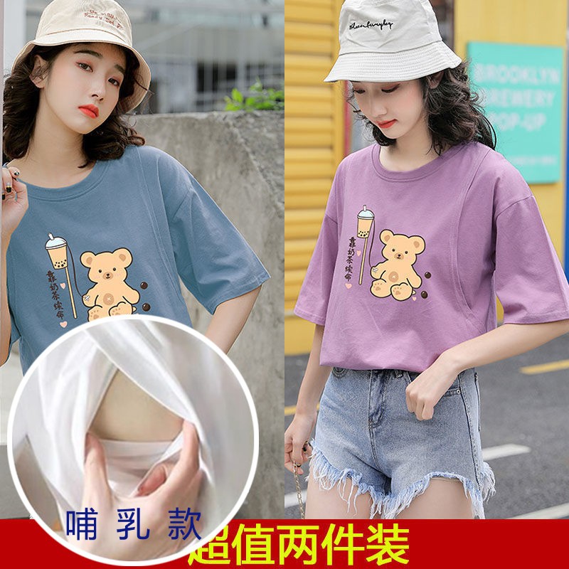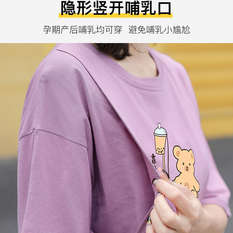 Летняя новая Послеродовая короткая одежда для грудного вскармливания, верхняя одежда, нескользящая свободная одежда с рукавами до локтя, модная одежда для кормления грудью для женщин летом