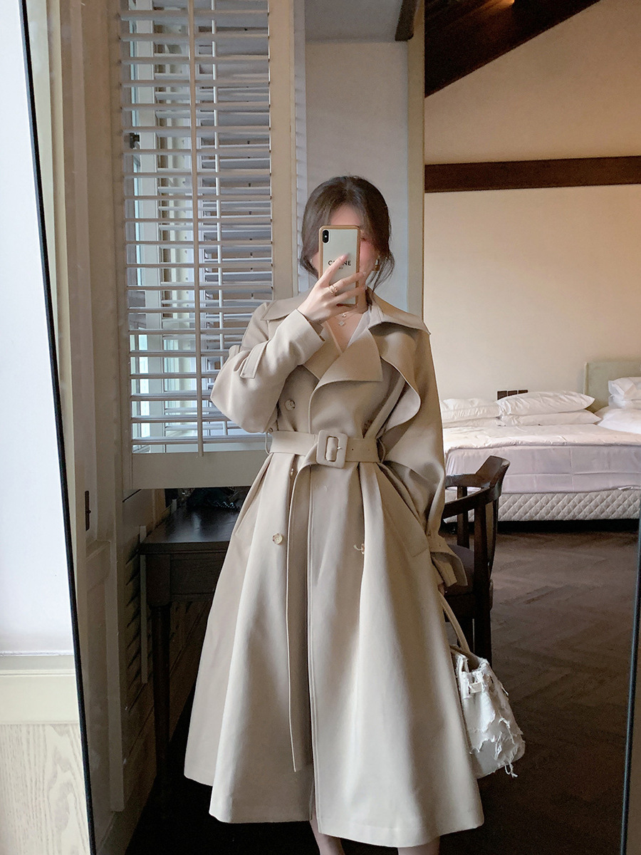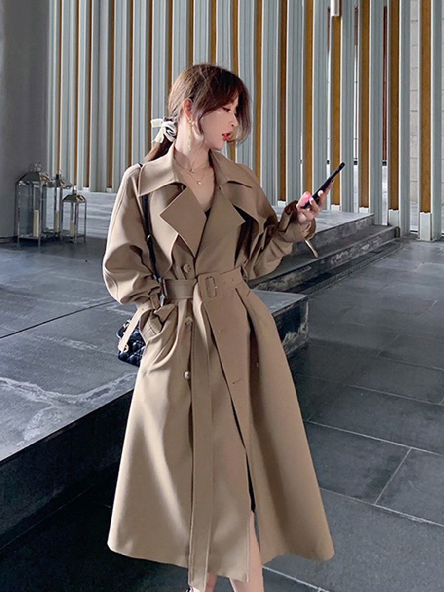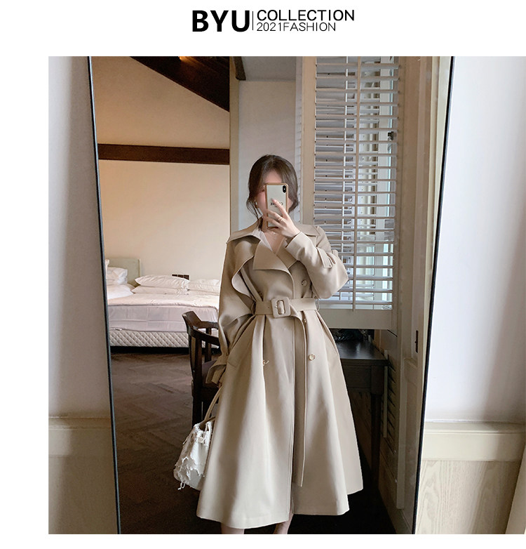 Новая женская удлиненная утепленная повседневная куртка-парка в британском стиле цвета хаки с поясом, весна-осень 2025