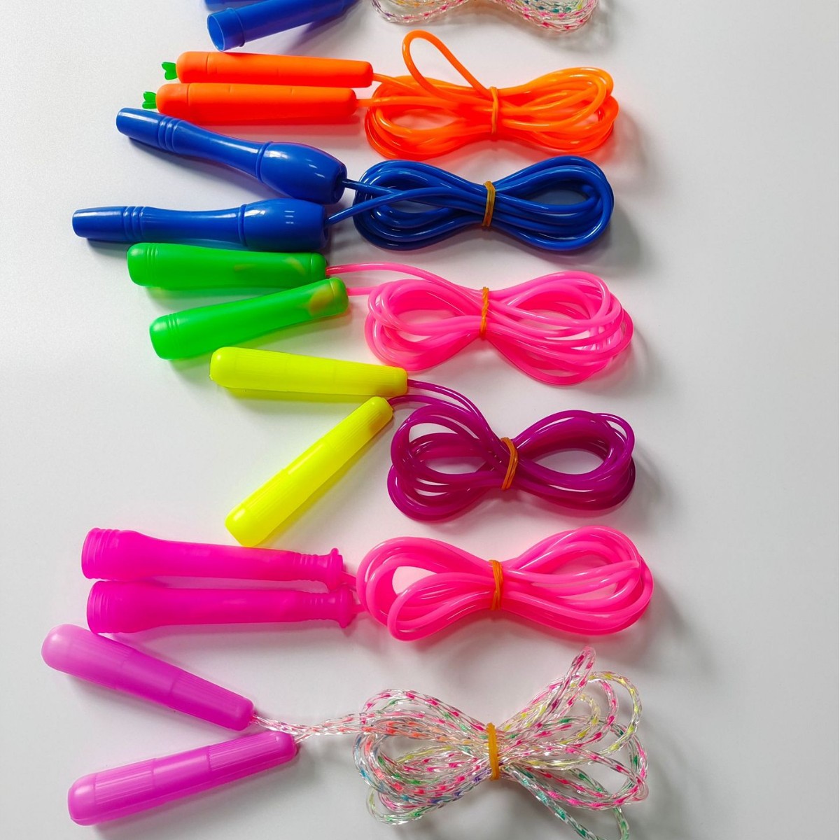 本厂生产各种规格型号手柄的塑料儿童跳绳,颜色鲜艳光亮柔软防冻,手柄多款可供选择,绳子粗细长短颜色可以根据客户要求来定做,本厂承诺:以好的质量优惠的价格为客户服务,欢迎来电洽谈业务。因为跳绳品种多,手柄款式多,价格也不一样,采购时请和客服联系,谢谢