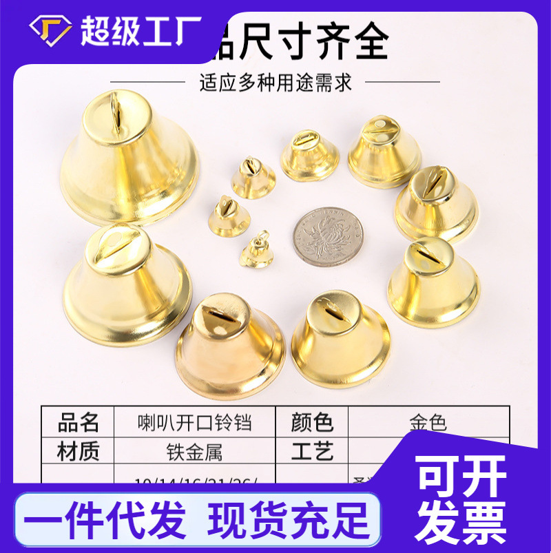 Оптовые рождественские колокольчики с открытым верхом, декоративные металлические колокольчики-подвески для рождественских ветряных колокольчиков, 10-50 мм, маленькие украшения
