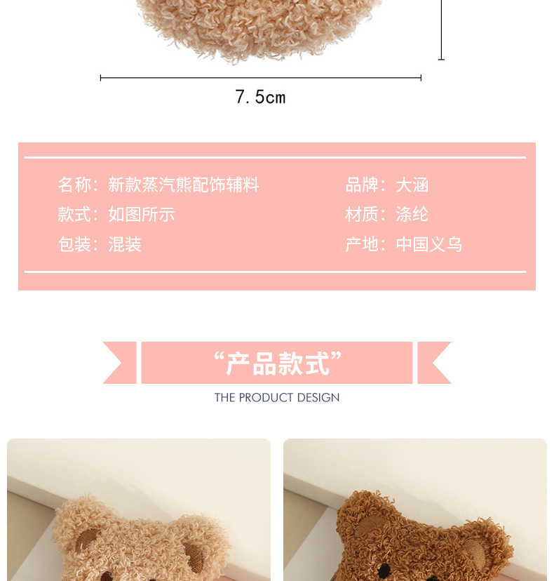 Медведь темно-кофейный (6,5*7,5 см); Светлый кофейный мишка (6,5*7,5см); Бежевый мишка (6,5*7,5 см); Белый медведь (6,5*7,5 см); Розовый мишка (6,5*7,5 см); Медведь-рюкзачок (маленький размер 4,5*5 см); Медведь-рюкзачок (большой размер 7,5*6,5 см); Зайчик темно-кофейный (7*8,5см); Легкий кофейный кролик (7*8,5см); Бежевый кролик (7*8,5см); Белый кролик (7*8,5 см); Розовый кролик (7*8,5 см); Коричневый румянец (6,5*7см); Белый румянец (6,5*7 см); Белый румянец (6,5*7 см); Розовый румянец (6,5*7 см); Румяна медвежонка цвета кожи (6,5*7см); Морковь Кролик Белый (5,5*5,5см); Котенок (5,5*4см); Маленькая рыбка (5*4см); Маленькая пчелка (4*4см); Голова солнца льва-слона (5,5*5 см); Доступно несколько цветов, по индивидуальному заказу; Коричневый медвежонок-тортик (5*5см); Розовый медвежонок-тортик (5*5см); Фиолетовый торт-медведь (5*5см); Желтый торт-медведь (5*5см); Белый торт-медведь (5*5см); Синий медвежонок-тортик (5*5см)