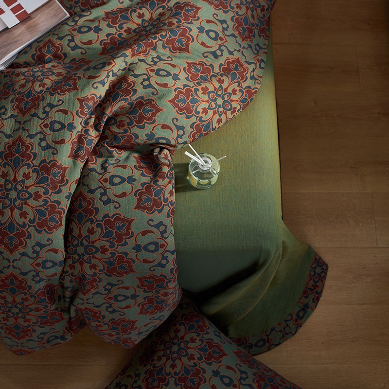 Новые осенне-зимние товары, подходящие для всех сезонов, комплект из четырех предметов из двухслойной жаккардовой марли, в ретро-стиле нового китайского искусства, классический этнический стиль, комплект из чистого хлопка.