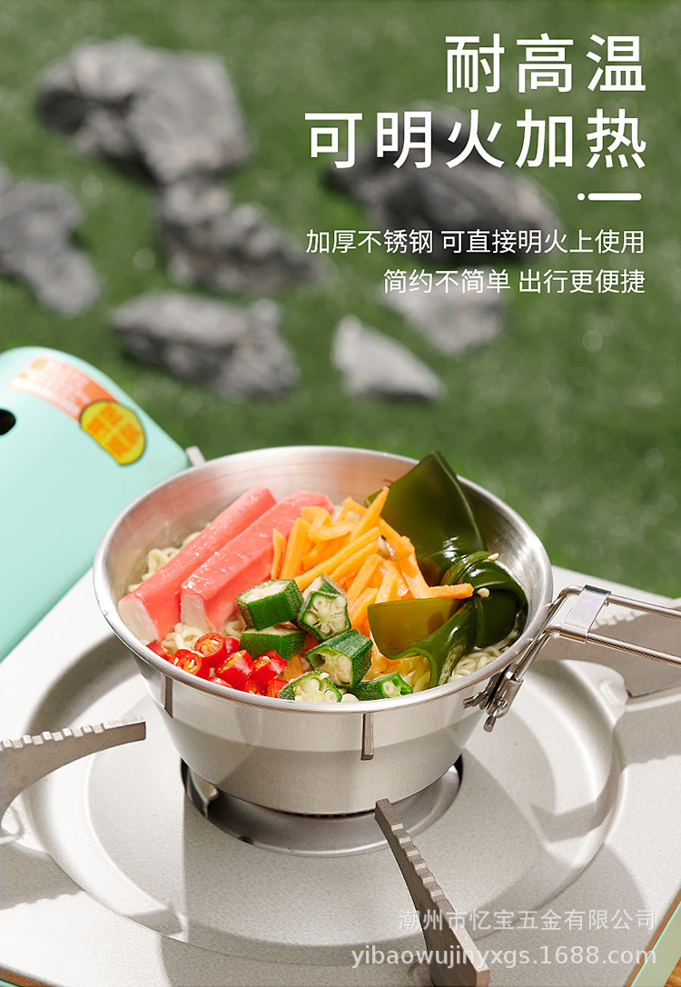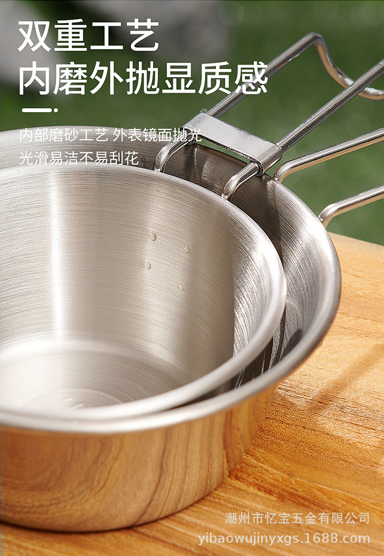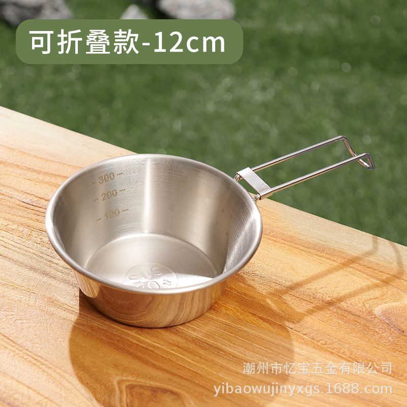 Складная походная посуда из нержавеющей стали 304 с ручкой для кемпинга и активного отдыха, портативная.