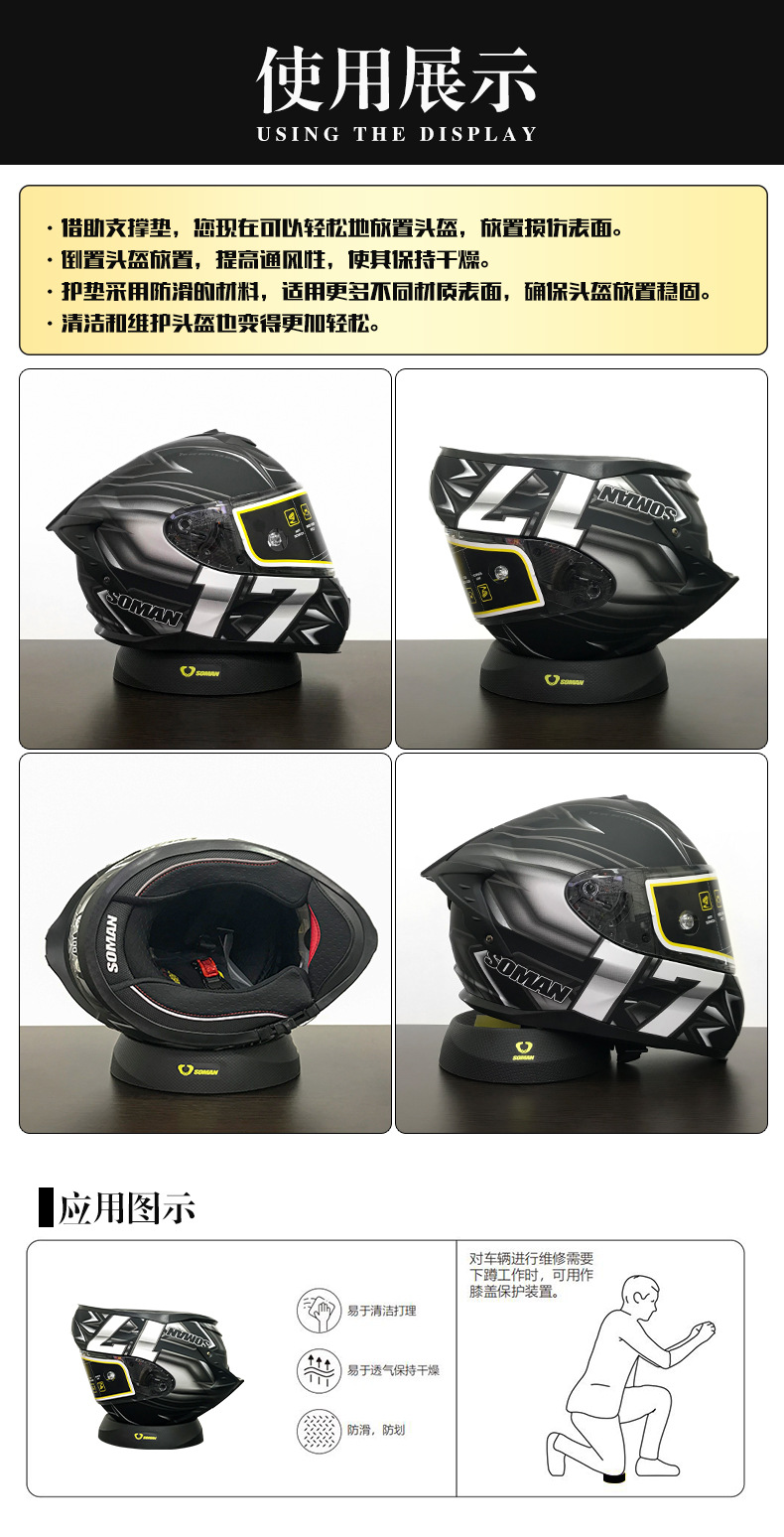 Многофункциональная подушка для шлема SOMAN, опорная подушка для шлема, основание для мотоциклетного шлема, подходит для полноразмерных и половинных шлемов, защитная подушка, черная, противоскользящая.