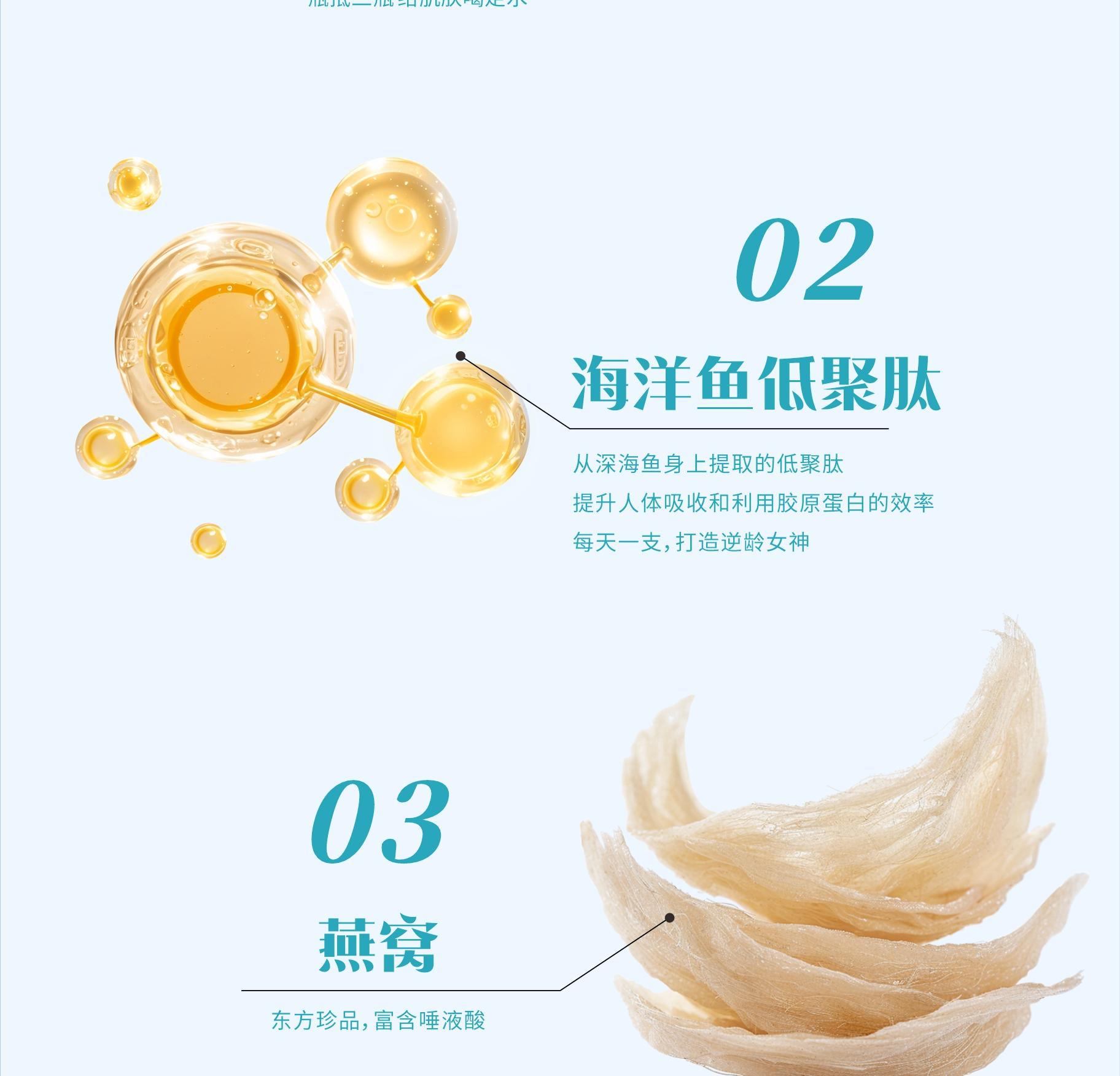 Пептидная гиалуроновая кислота с натриевой солью для женщин, которые поздно ложатся спать, концентрированный раствор для приема внутрь с ниацинамидом, гиалуроновой кислотой и коллагеном из птичьих гнезд маломолекулярной формы.