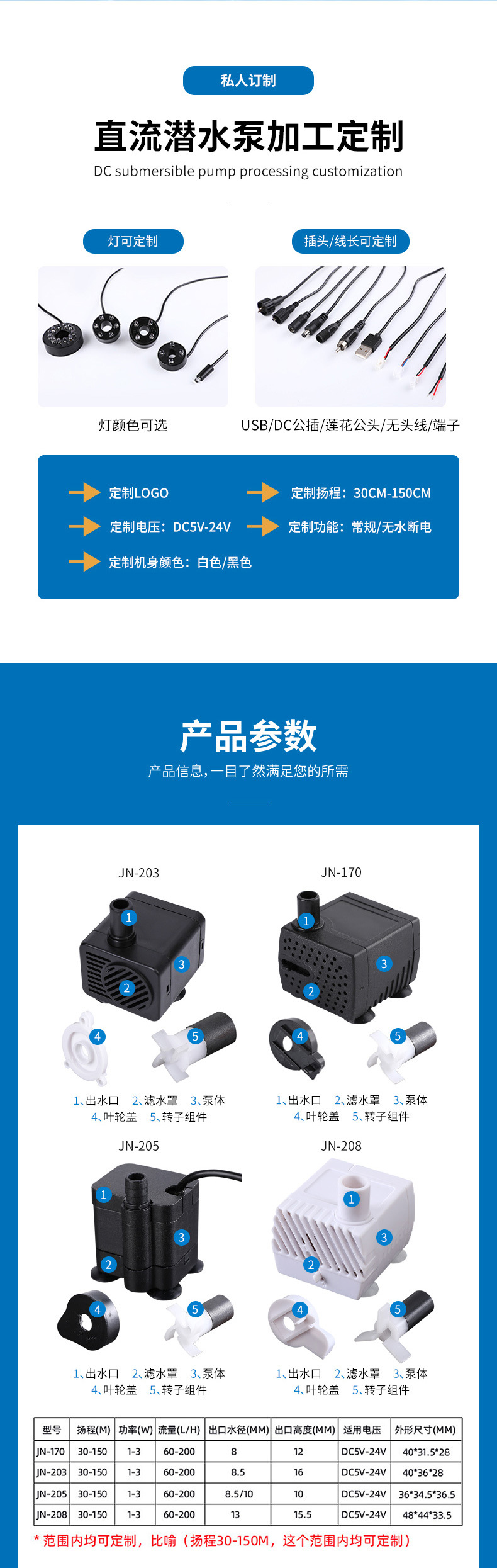 Горизонтальное погружное боковое всасывание Нижний всасывающий водяной насос USB, водяной насос 5V DC водяной насос Солнечный водяной насос