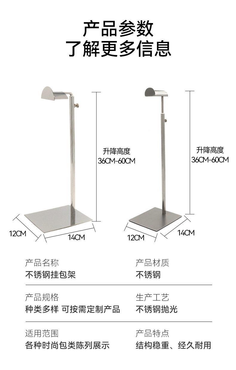 Стеллаж для демонстрации сумок из нержавеющей стали, регулируемая подставка для сумок в магазине одежды, держатель для сумок, вешалка для сумок