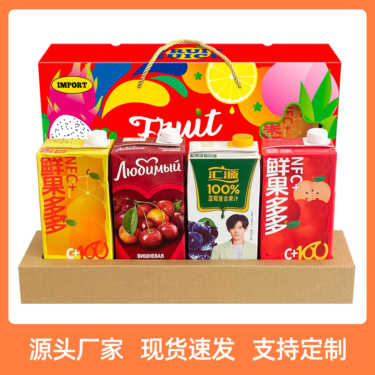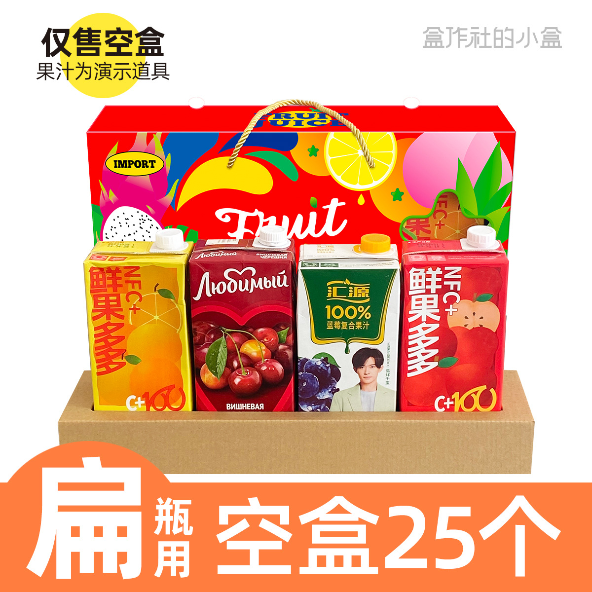 Готовая подарочная коробка для напитков объемом 1 литр, праздничная упаковка, готовая коробка для 4 бутылок импортного сока, универсальная.