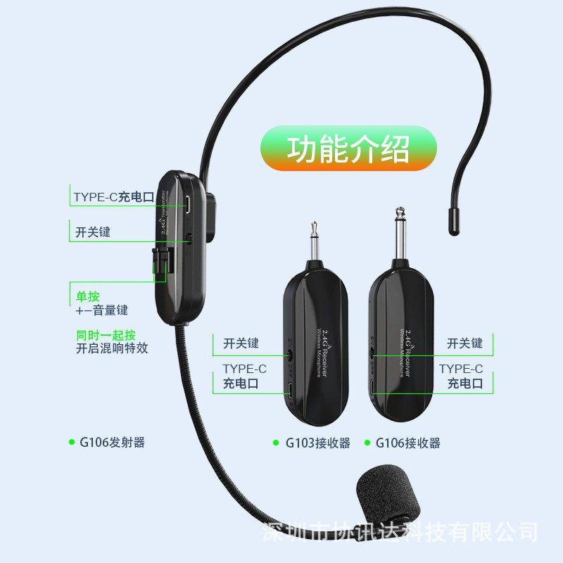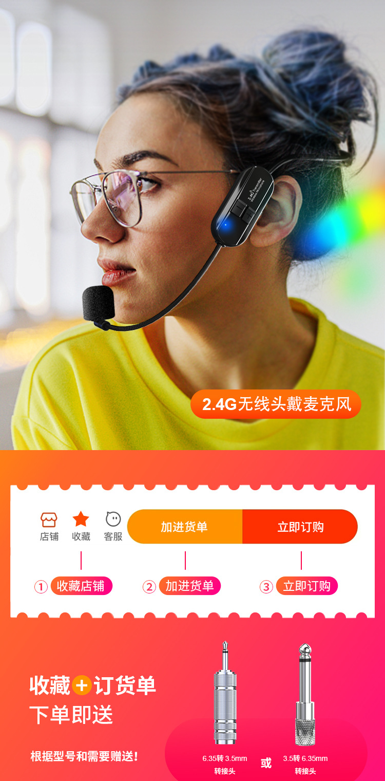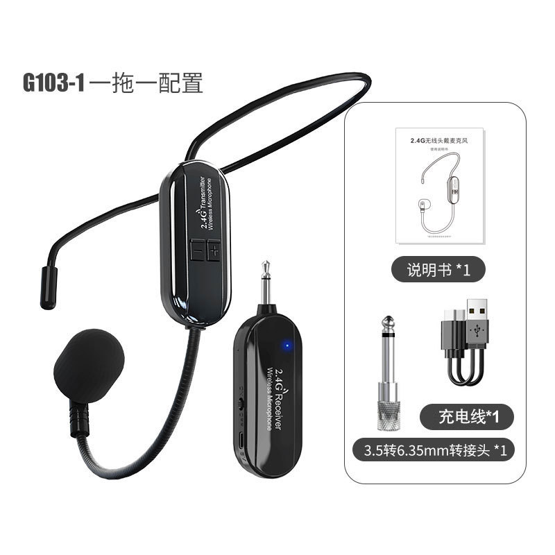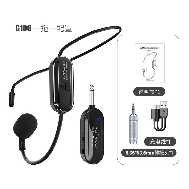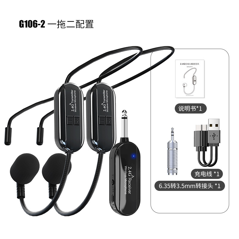 Один беспроводной головной микрофон 2,4 г (интерфейс 3,5 мм); Один беспроводной головной микрофон 2,4 г (интерфейс 6,35 мм); Один на два беспроводных головного микрофона 2,4 г (интерфейс 6,35 мм)