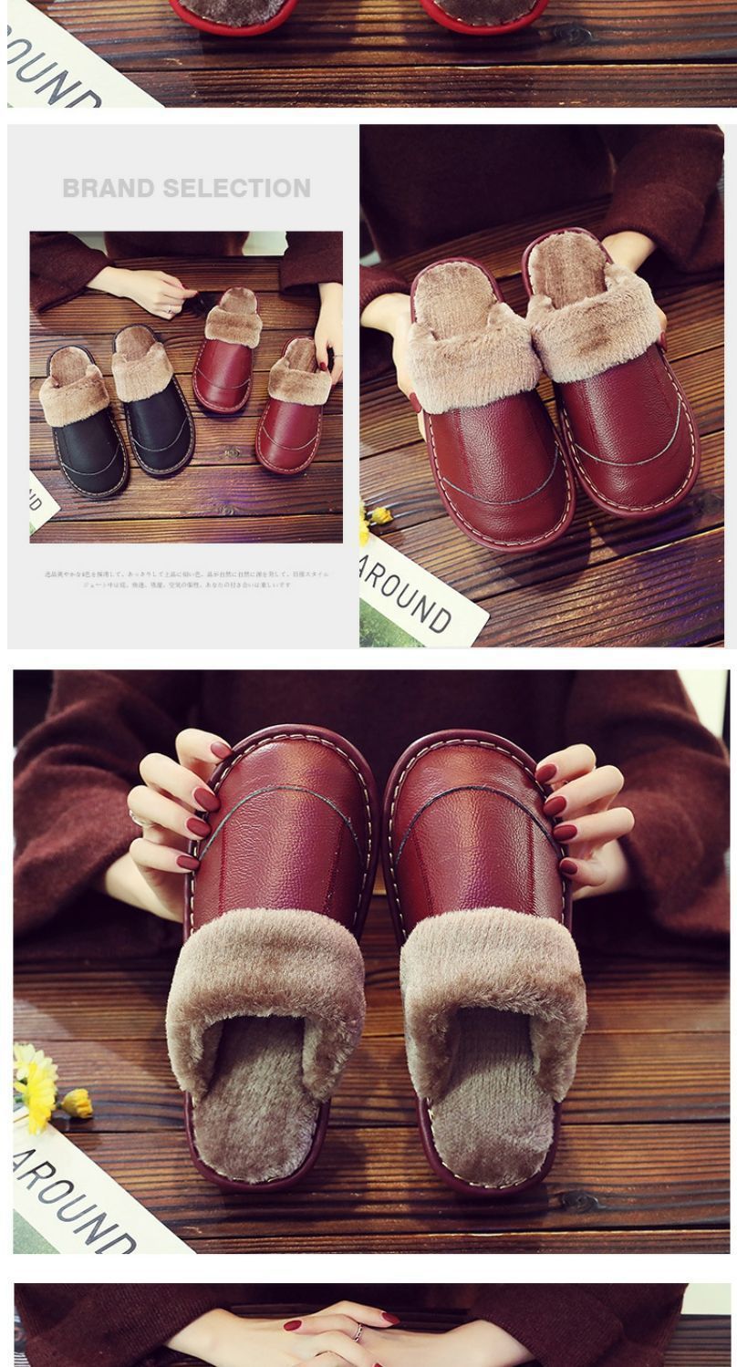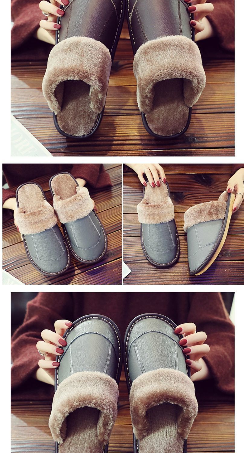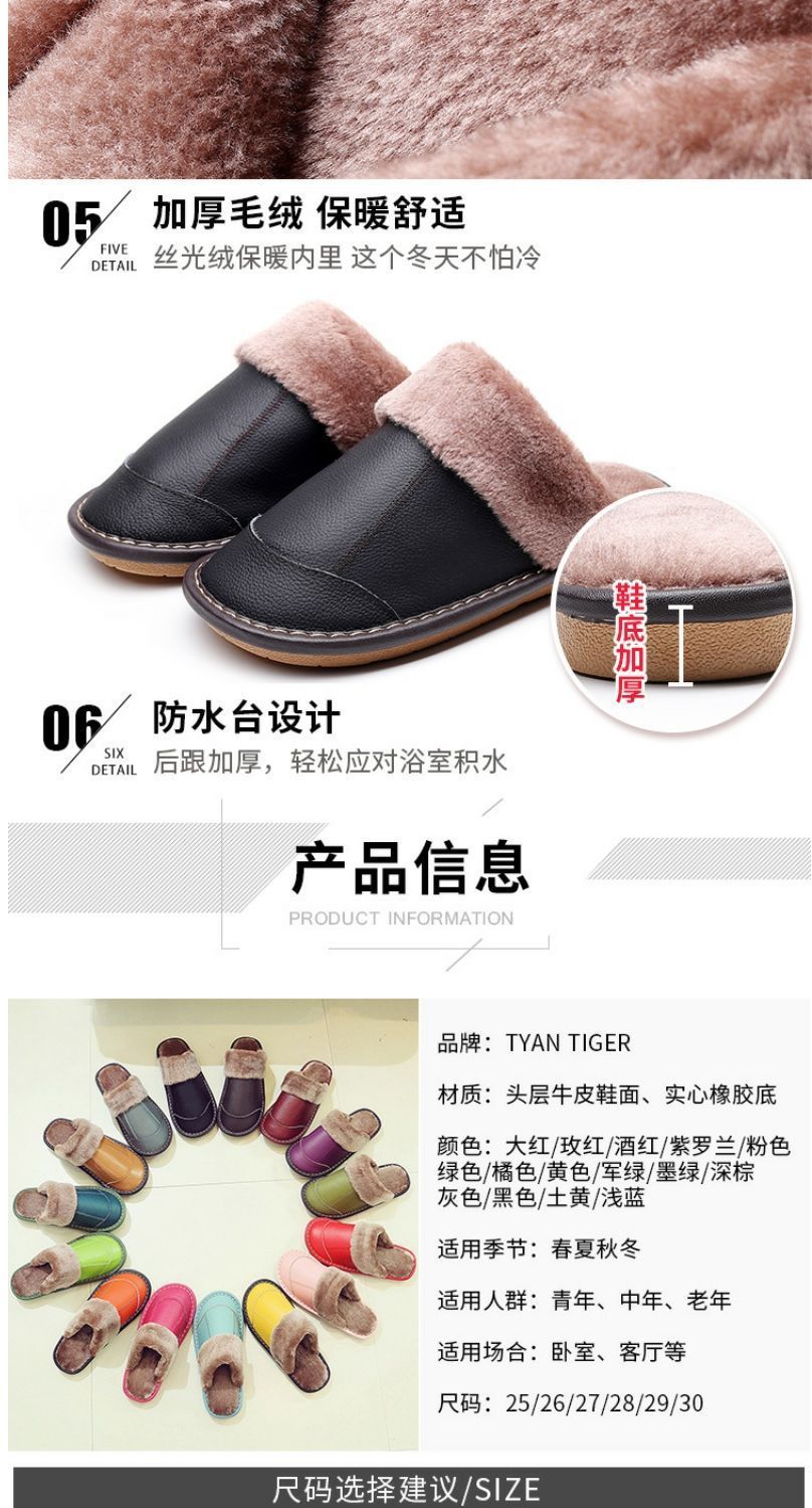 Тапочки из натуральной коровьей кожи, теплые, зимние, для пар, прошитые, домашние, нескользящие, теплые.
