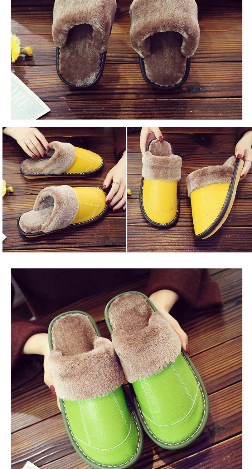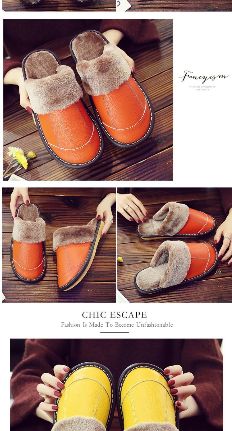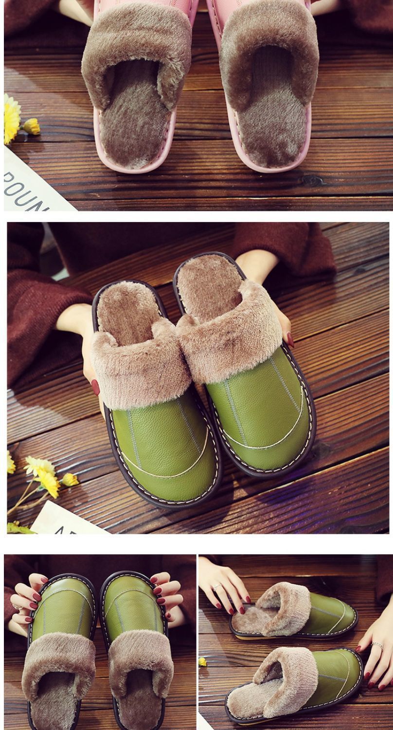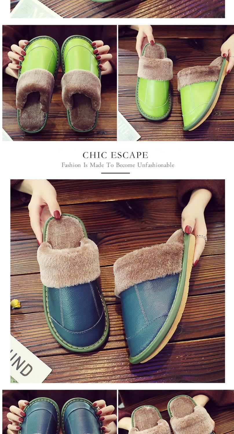 Тапочки из натуральной коровьей кожи, теплые, зимние, для пар, прошитые, домашние, нескользящие, теплые.