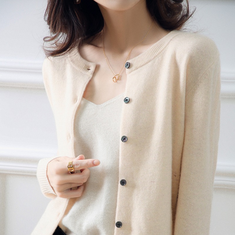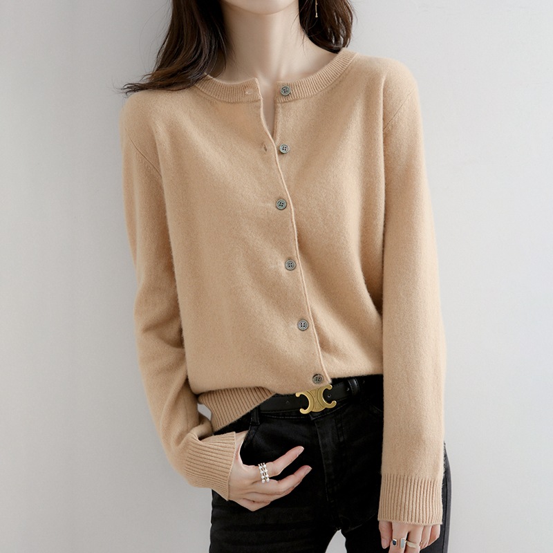 Кардиган с круглым вырезом, женская верхняя одежда, весенне-осенний кардиган, вязаная рубашка для женщин