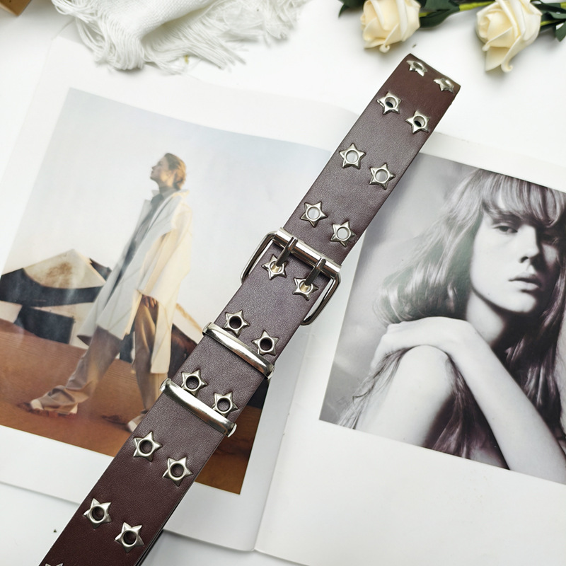 Полый двухрядный ремень в стиле панк Star Air Eye, корейские джинсы с глазами, женский модный декоративный пояс в стиле хип-хоп