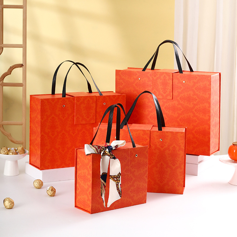 Подарочная коробка, индивидуальная оранжевая прямоугольная чашка для чая, упаковка, пустая коробка, жесткая коробка для фестиваля середины осени, подарочная коробка с откидной крышкой с УФ-печатью, индивидуальная