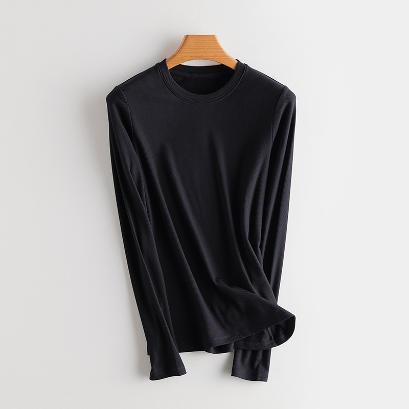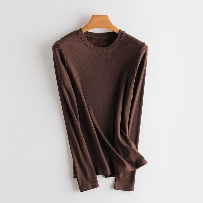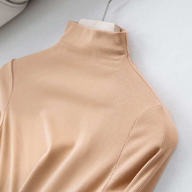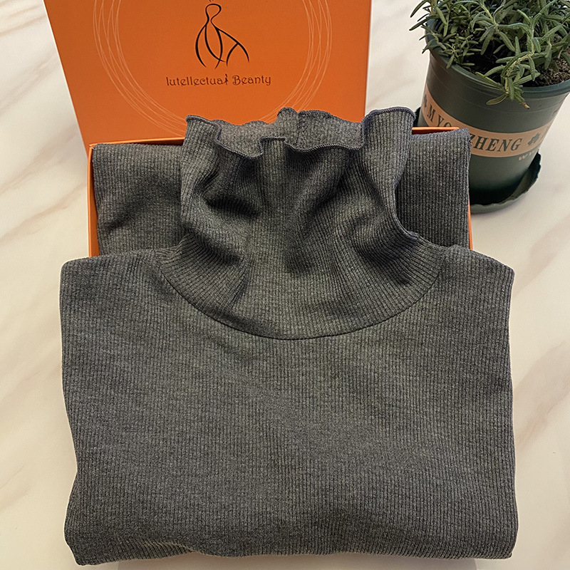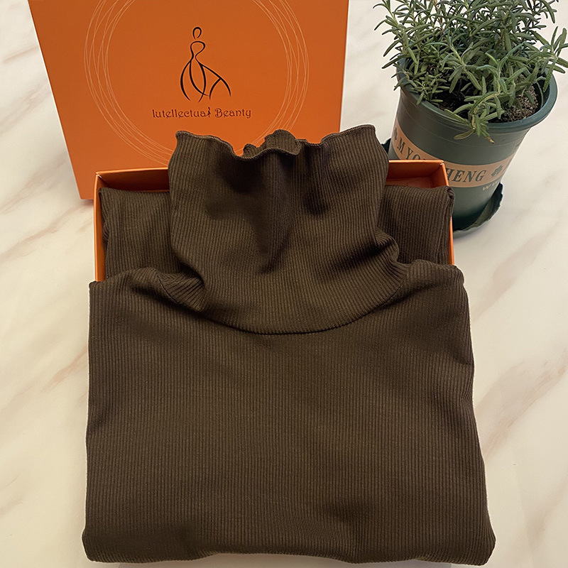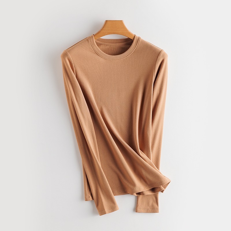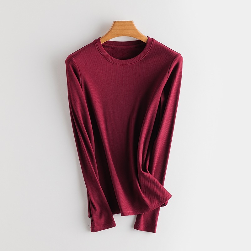 Женский осенне-зимний однотонный бархатный топ с шелковой подкладкой из шелковицы, теплая и нагревающая нижняя рубашка, новый свитер с длинными рукавами и резьбой
