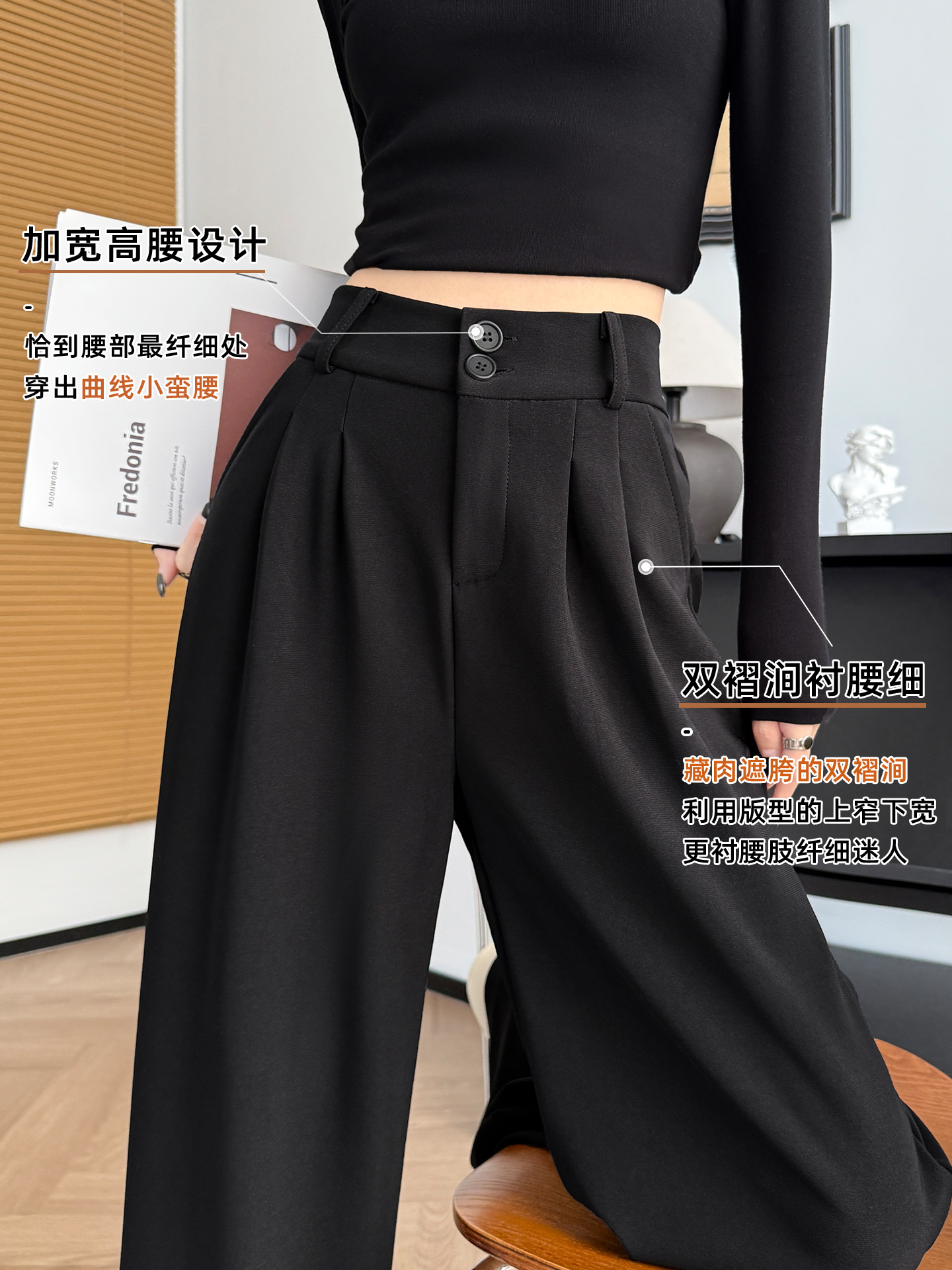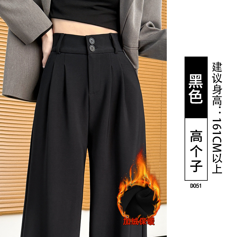 Элегантные женские брюки для осени и зимы, на флисовой подкладке, свободные прямые, повседневные, стройнящие, черные, с высокой талией, прямые, драпированные, широкие брюки.