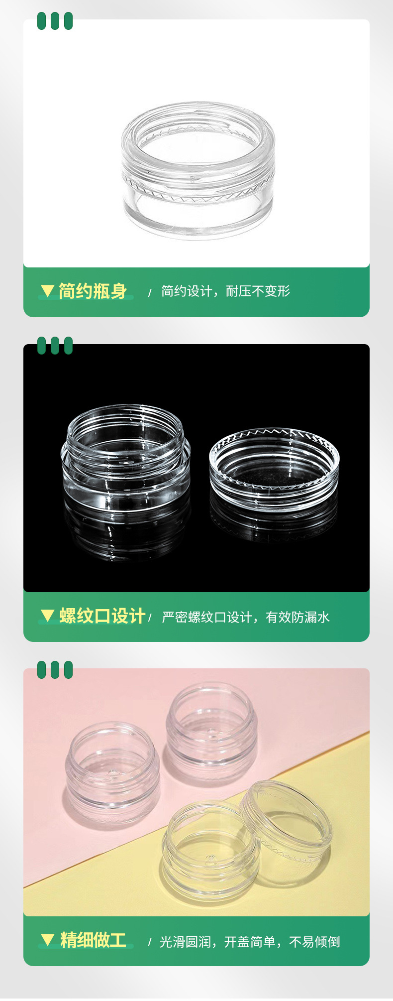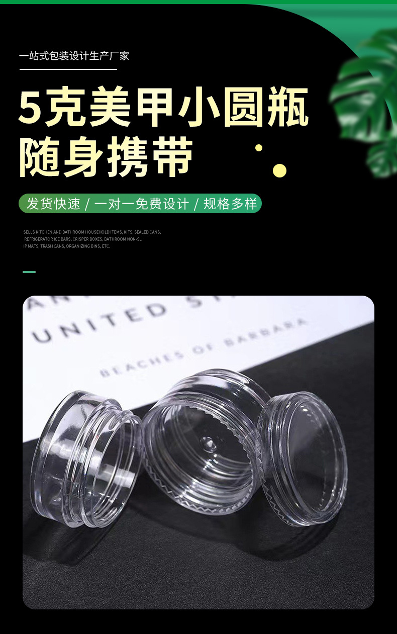 Производитель поставляет маленькие круглые флаконы для нейл-арта 5г, ювелирные коробочки, флаконы для крема, коробочки для крема для глаз, косметические флаконы для розлива, флаконы для нейл-арта.