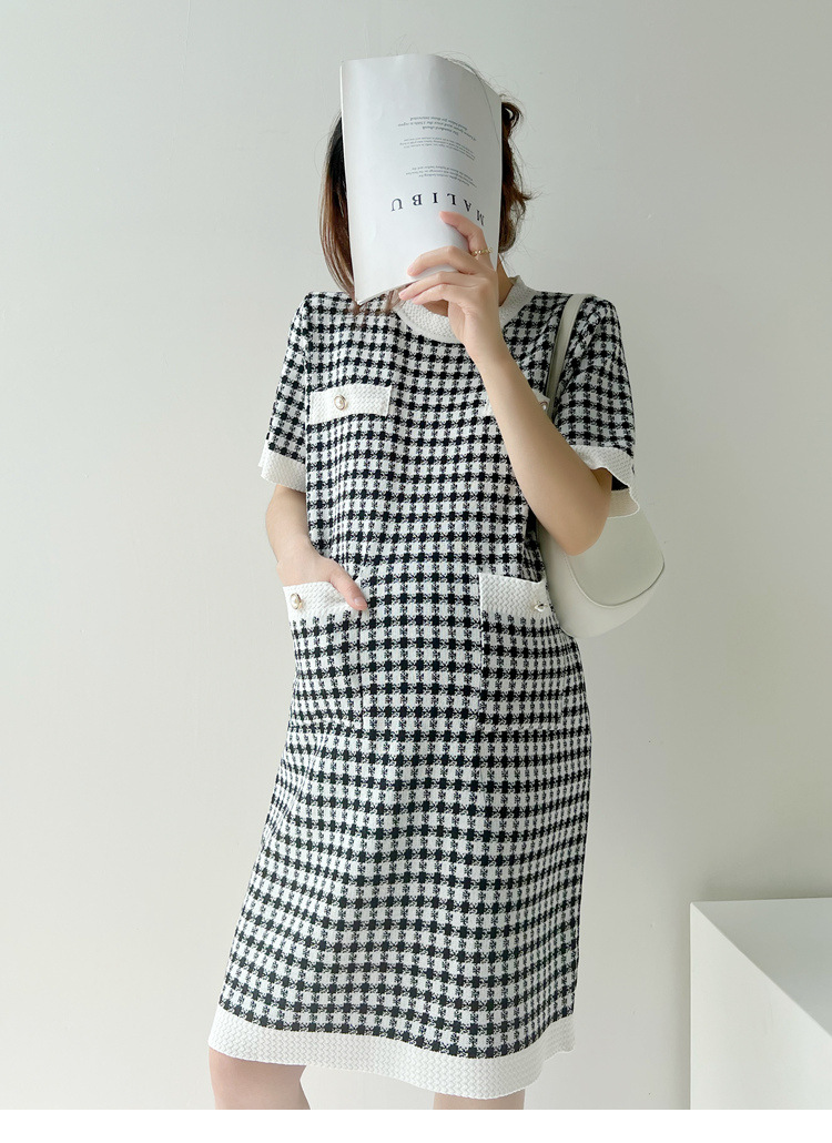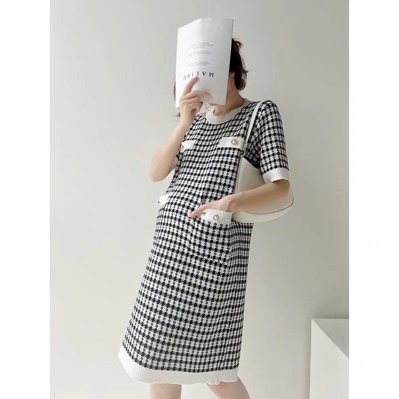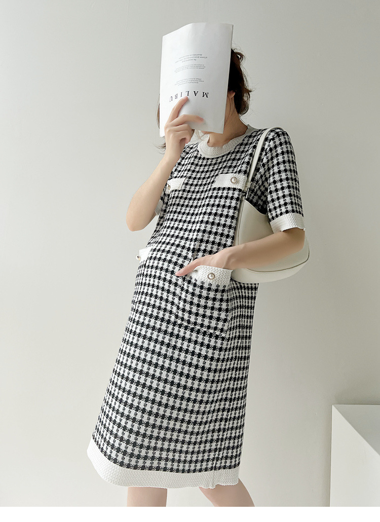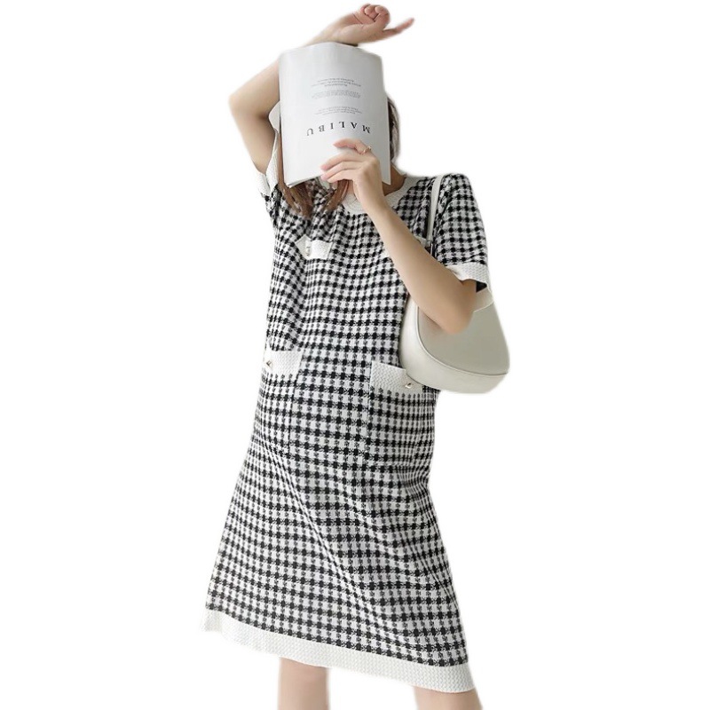 2023 летнее платье Свободная тонкая вязаная юбка с круглым вырезом и короткими рукавами Удобное платье для беременных средней длины