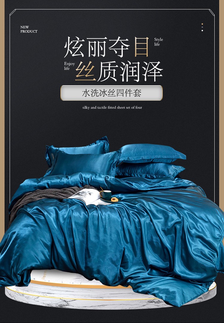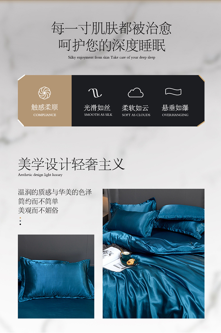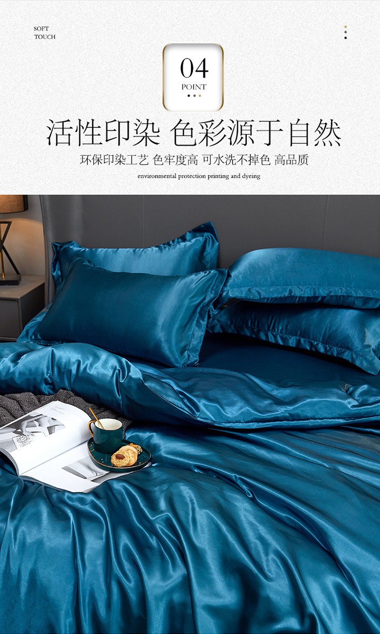 Однотонное шелковое постельное белье Amazon через границу Европы и США, односпальная простыня, пододеяльник, наволочка, комплект из четырех предметов, производители от имени