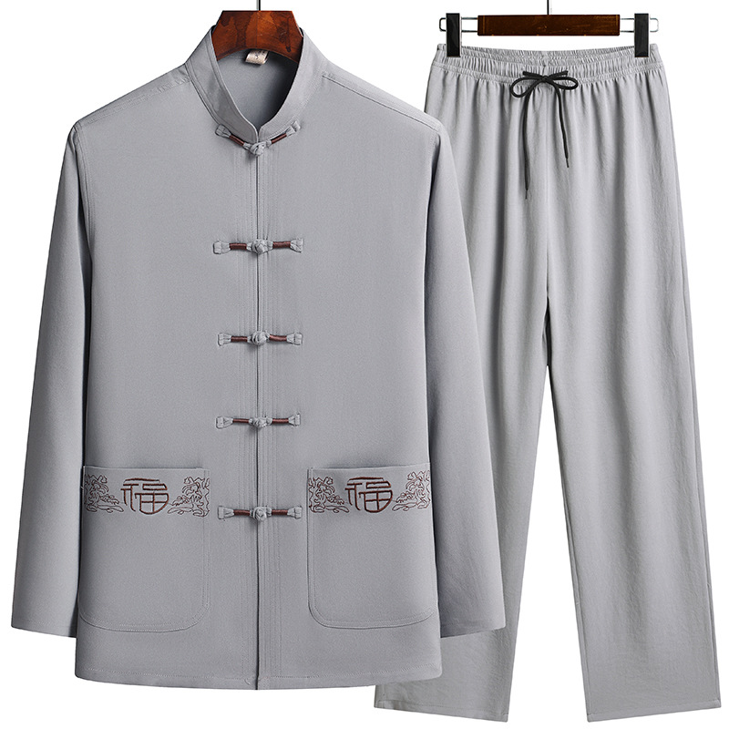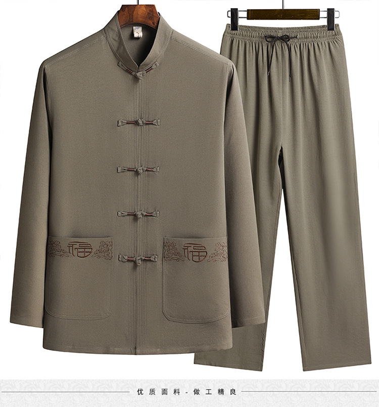 Популярный комплект одежды для пап среднего и старшего возраста, костюм Тан с длинными рукавами, одежда для выступлений на день рождения для дедушки и мужчин старшего возраста 60-80 лет.