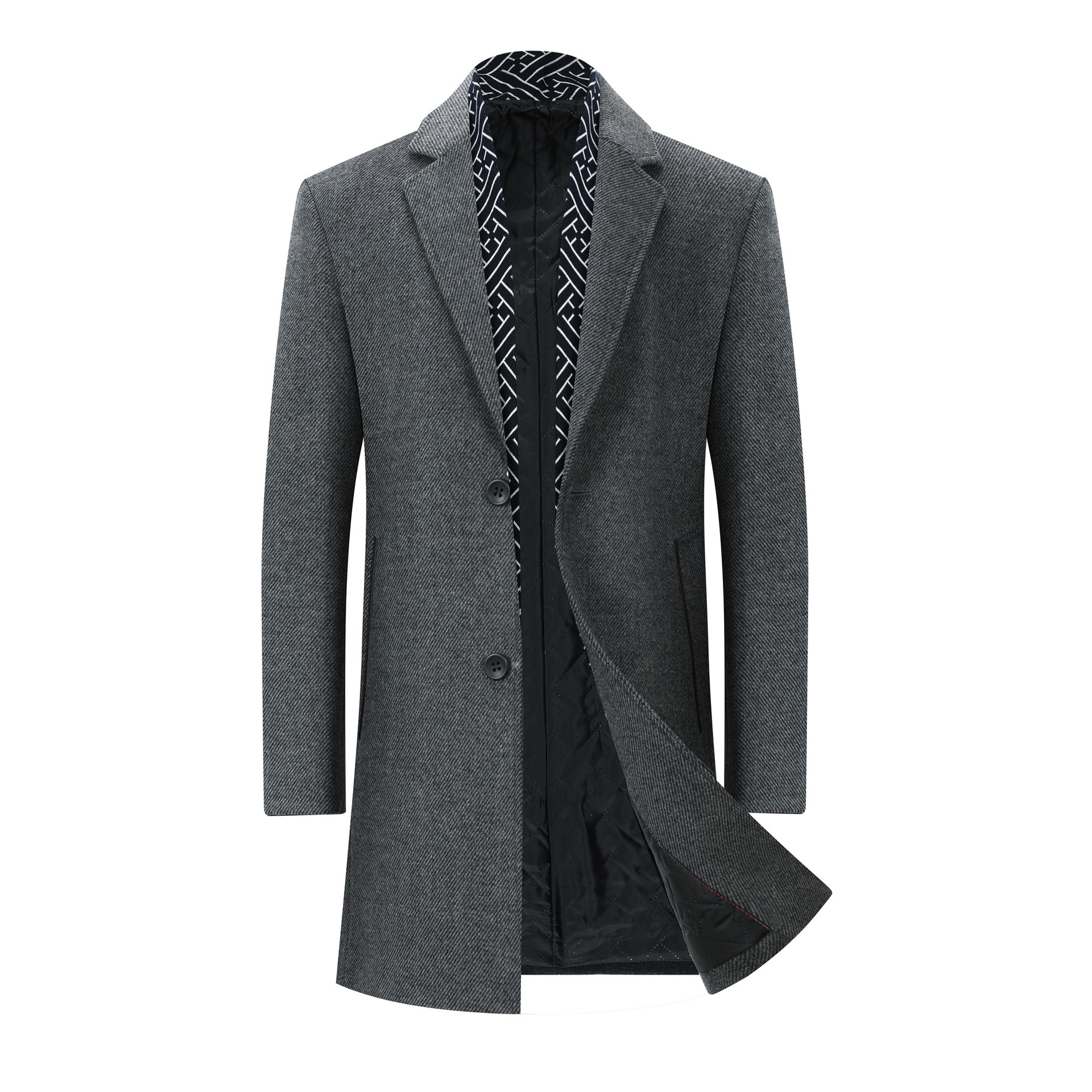 Новинка 202, осенне-зимняя мужская ветровка с воротником, деловая повседневная шерстяная верхняя одежда средней длины для папы для мужчин