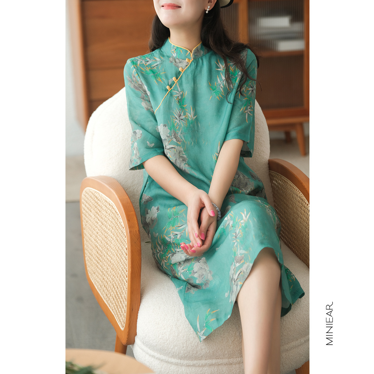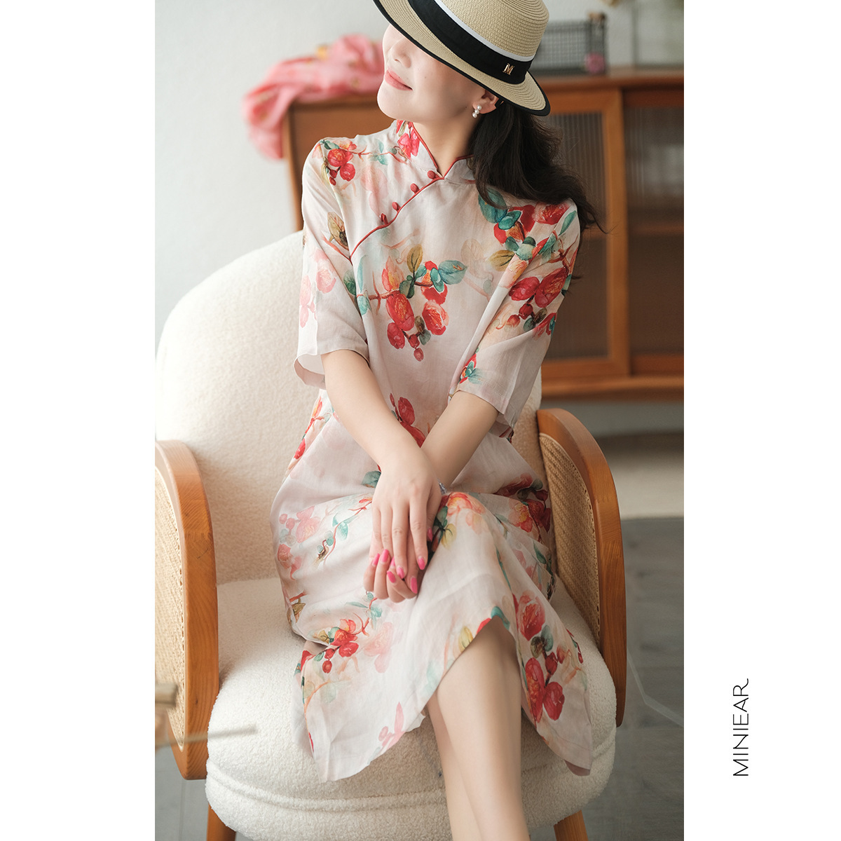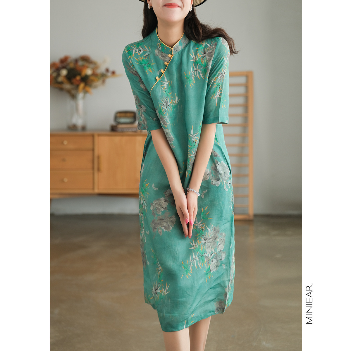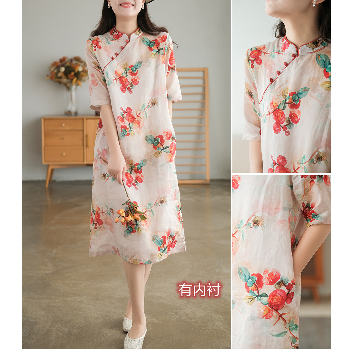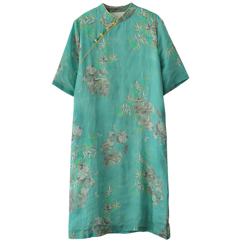 2022 летнее Новое художественное свободное женское толстое модное платье рами с принтом и воротником-стойкой с пряжкой больших размеров