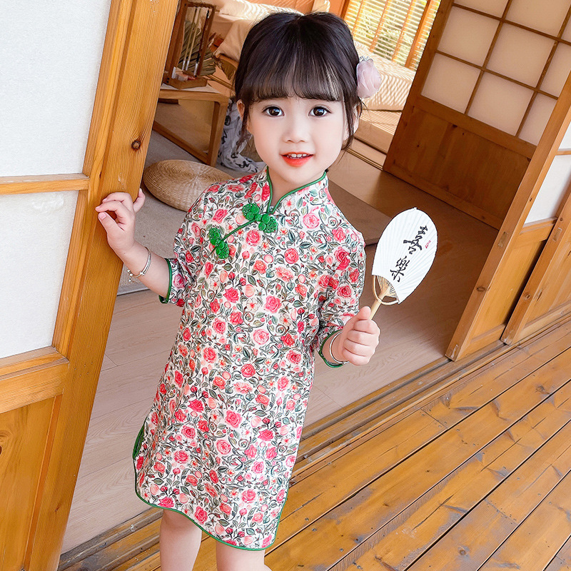 Осеннее детское платье Cheongsam в китайском стиле ханьфу для девочек, Настольная одежда Guzheng в этническом стиле, платье для девочек на один год