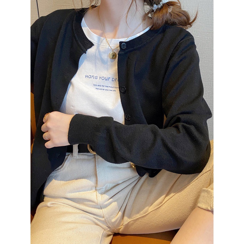 Кардиган, вязаное пальто, Женская весенне-осенняя верхняя одежда, тонкий свитер, весна 2022, новый черный осенне-зимний Топ с длинным рукавом