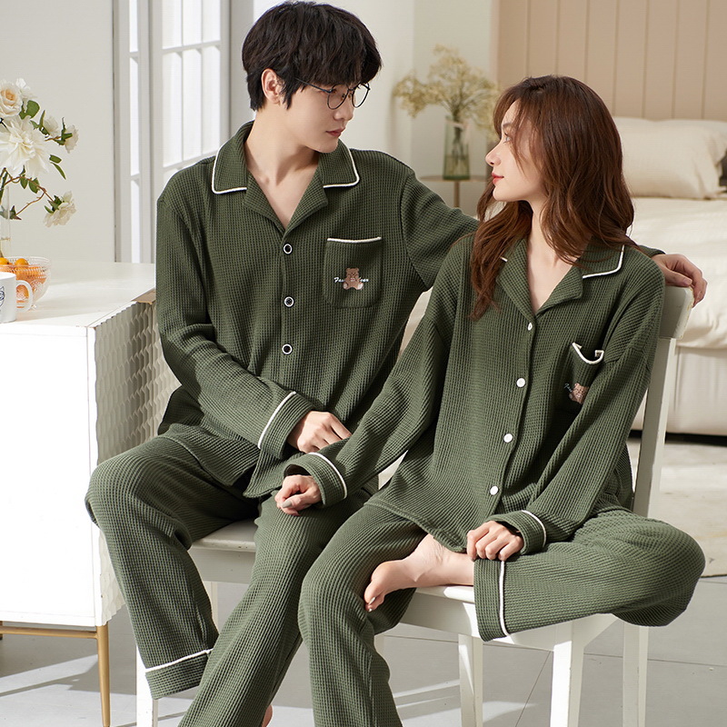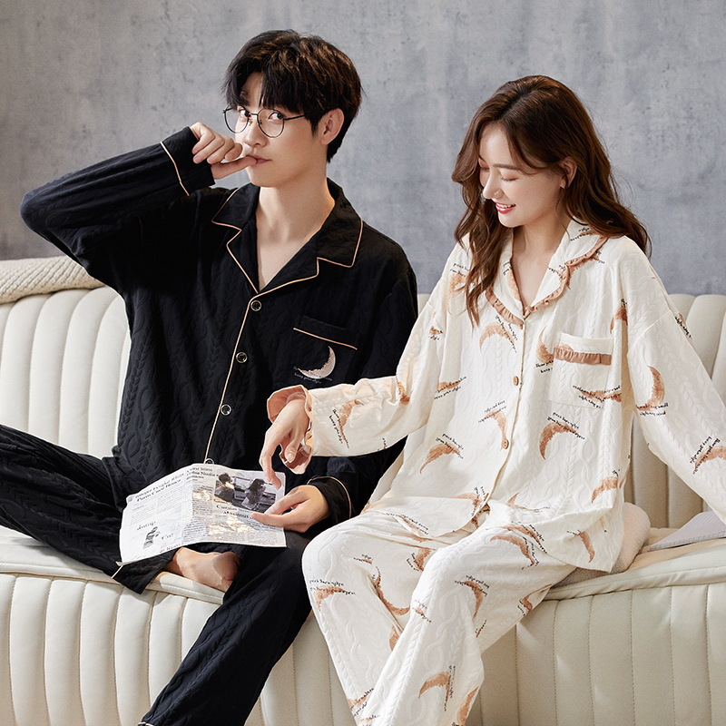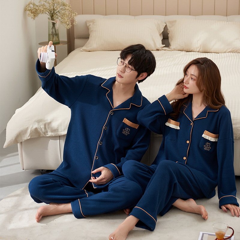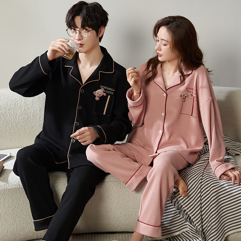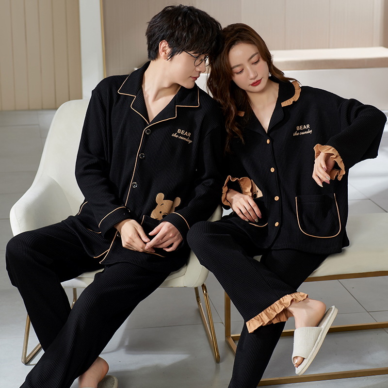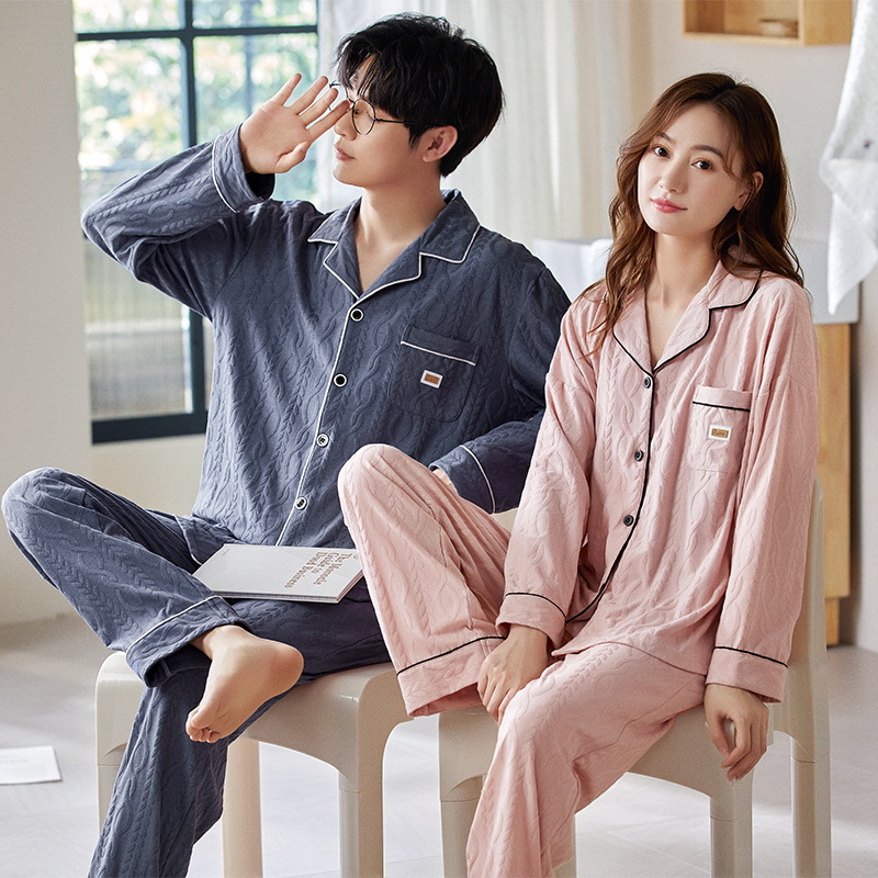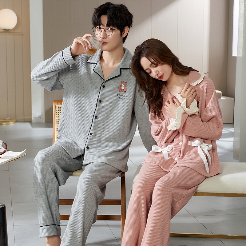Оптовая продажа, пижамы для пар, Женская хлопковая тонкая Осенняя мужская домашняя одежда, Повседневный Кардиган, весенне-осенний костюм