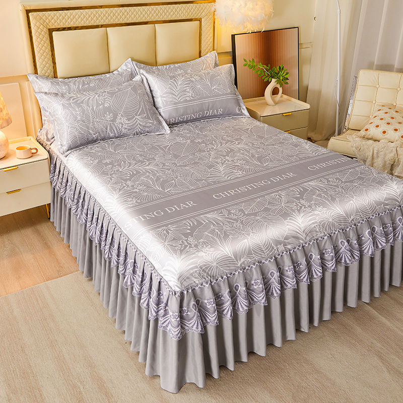 Летний коврик Ледяной Шелковый коврик Юбка для кровати Набор из трех предметов Бытовой двойной коврик Летний моющийся в машине коврик с кондиционером Мягкий коврик Покрывало
