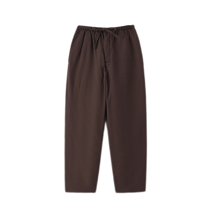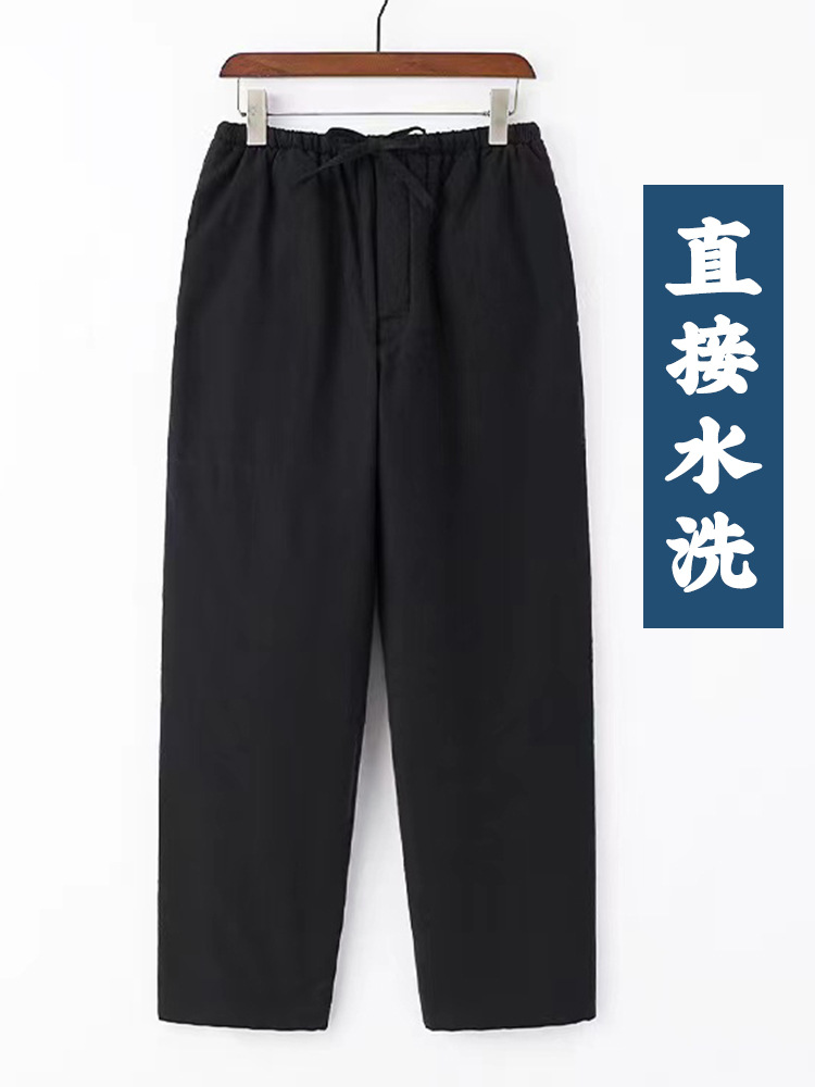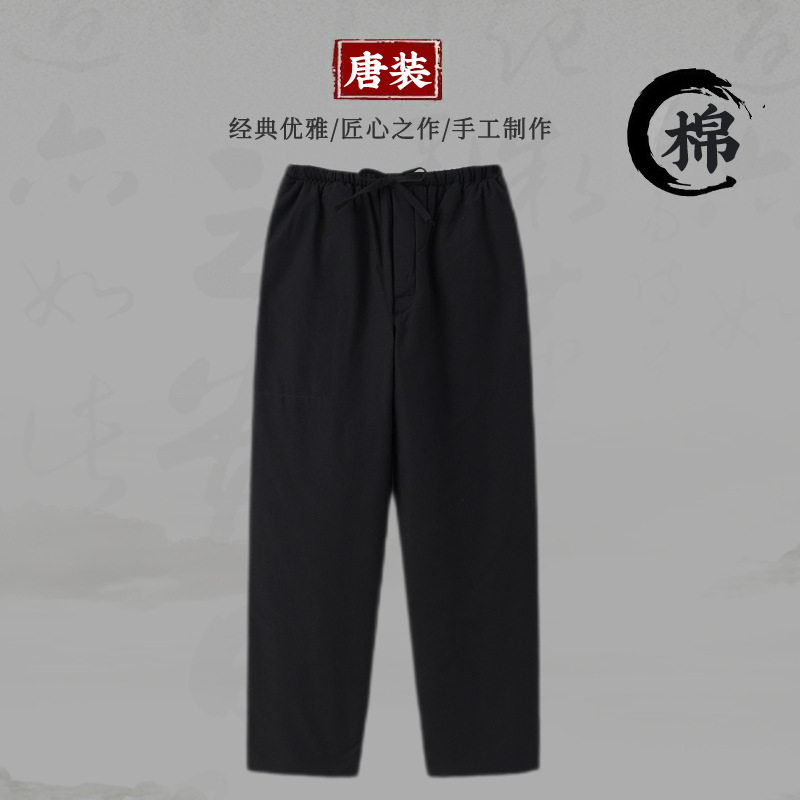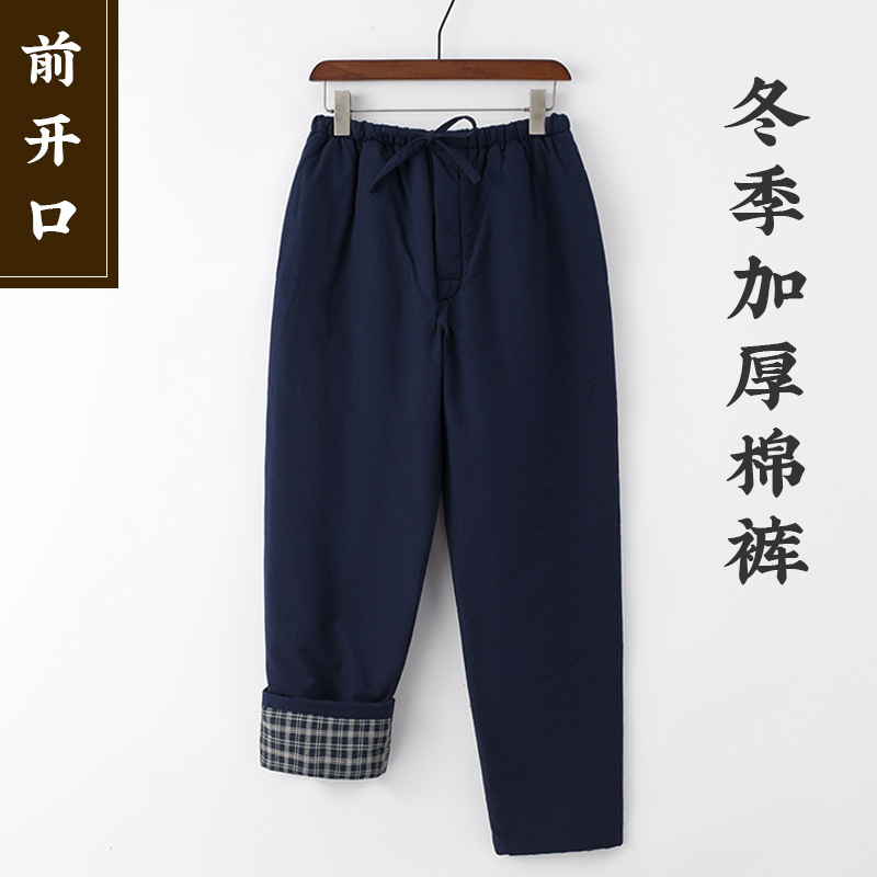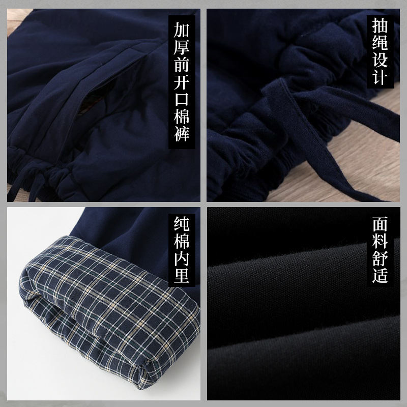 Утолщенный костюм Тан из грубой ткани, мужские хлопковые брюки в китайском стиле, теплые брюки из шелкового хлопка с завышенной талией, для среднего и пожилого возраста, прямые открывающиеся спереди