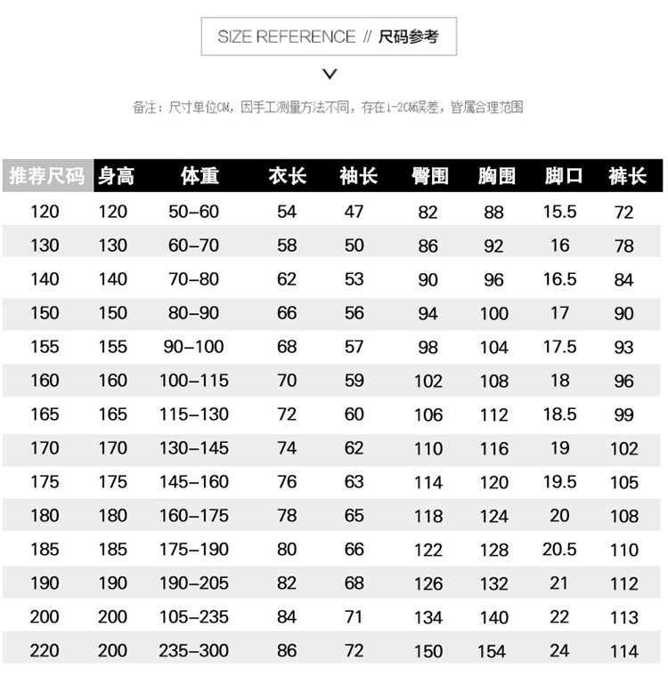 120; 130; 140; 150; 155; 160; 165; 170; 175; 180; 185; 190; 200; 220