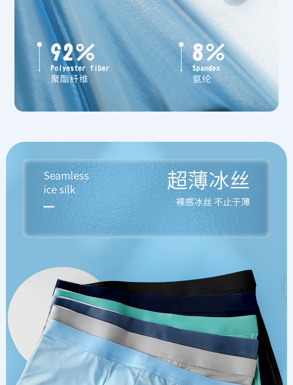 Мужское нижнее белье ледяной шелк нижнее белье поясные боксеры однотонные дышащие нижнее белье боксеры тонкие оптом