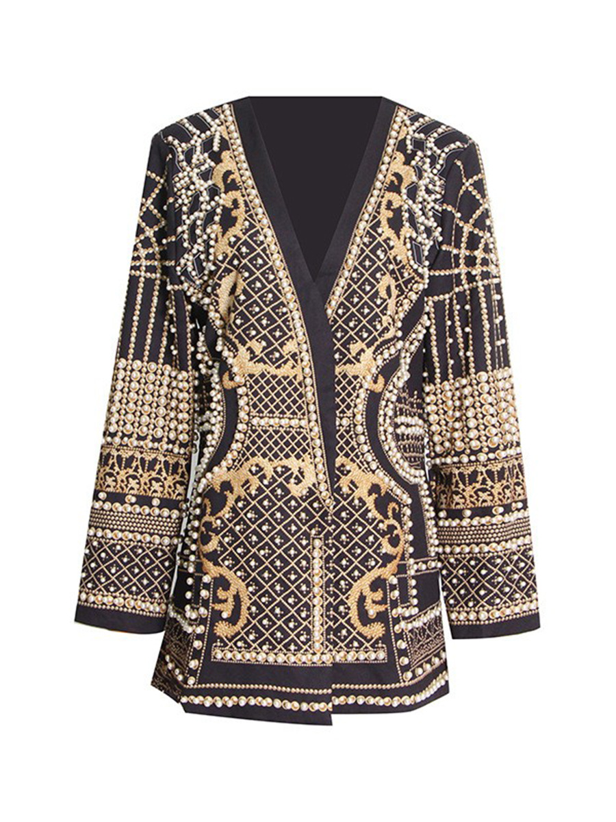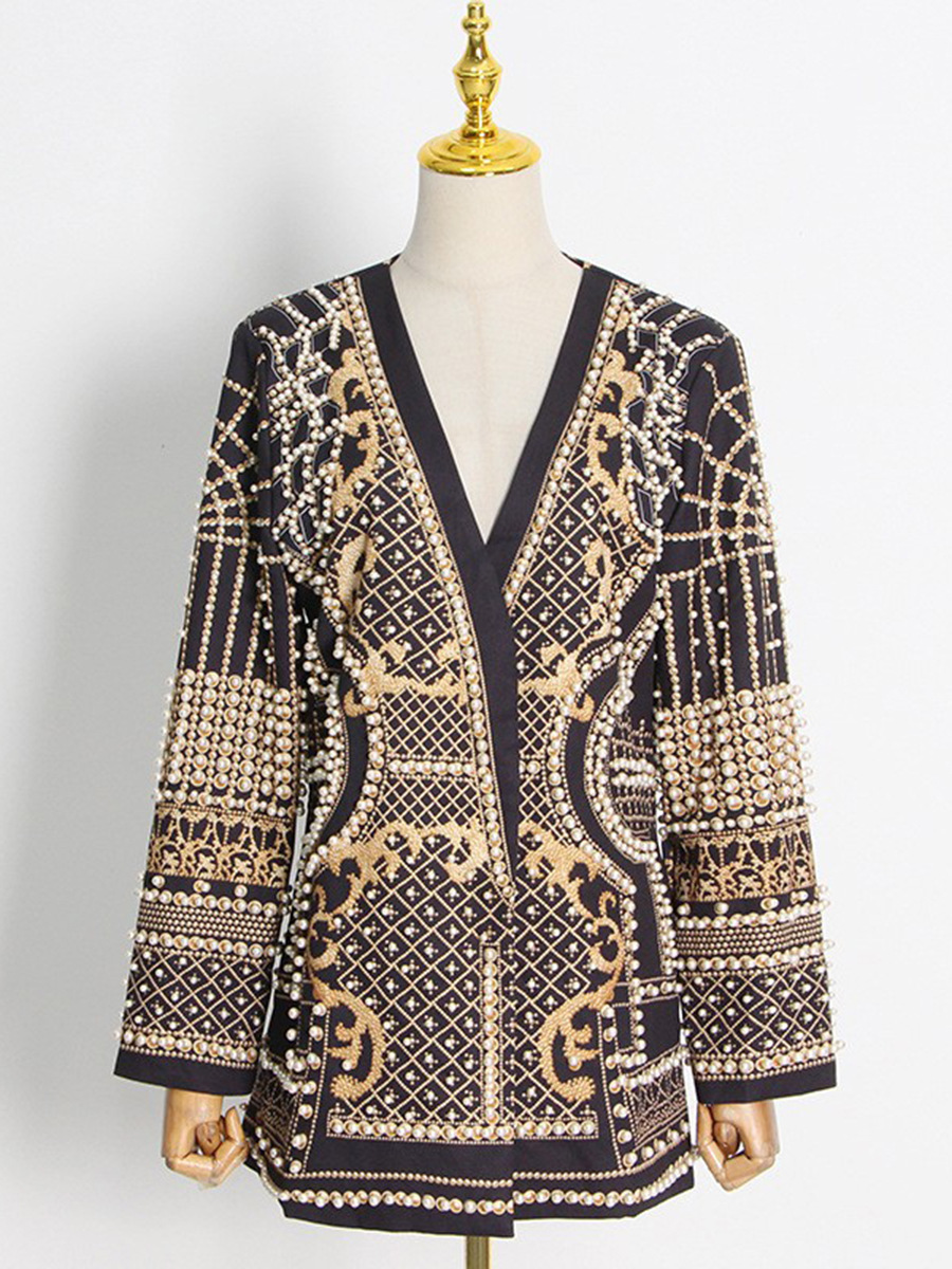 Элегантный винтажный блейзер премиум-класса с бисерной вышивкой и принтом, осенне-зимняя коллекция 2025, новая модная женская куртка с длинным рукавом