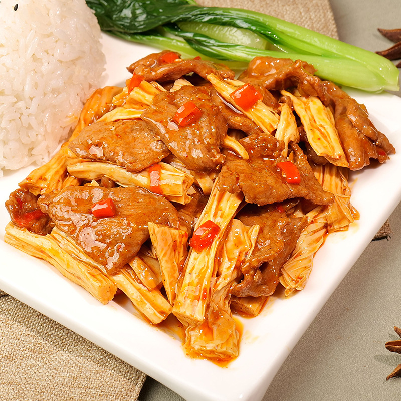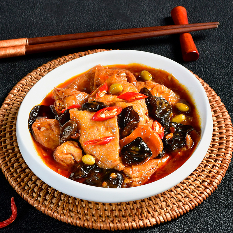 Баклажаны с рыбным вкусом и фаршем свинины, 200 г/пакет; Свинина в рыбном соусе, измельчённая, 200 г/пакет; Дишаньсянь 200 г/пакет; Тушёная свинина в гонконгском стиле, 160 г/пакет; Свиная мясо, обжаренное на острой приправе, 200 г/пакет; Жареная говядина 160 г/пакет; Гриб шиитаке и курица, 200 г/упаковка; Премиальная тушёная свинина с маринованными овощами, 200 г/пакет; Тигровый перец 170 г/пакет; Сладко-кислые свиные ребрышки 200г/пакет; Домашний тофу 200 г/пакет; Картофель с говядиной, 220 г/пакет; Острая свинина в рубашке, 180 г/пакет; Нарезанная свинина с винным перцем, 170 г/пакет; Гелешан Острая Курица 180 г/упаковка; Маринованная капуста и мясные ломтики 180 г/пакет; Бразильское барбекю 200 г/пакет; Юба тушёная свинина 200 г/пакет; Заварная горчица и шинкованная свинина 200 г/пакет; Сычуаньские и Хунаньские копченые ломтики свинины, 200 г/упаковка; Острый картофель с говядиной, 200 г/пакет; Куриные ножки с острой приправой, 3 штуки в упаковке; Острая жареная свинина 160 г/пакет; Куриной котлеты с карри, 200 г/пакет; Тушёная свинина 180 г/пакет; Курица Кунг Пао 200 г/пакет; Сладко-кислая свинина 180г/пакет; Тушёные свиные ребрышки 200 г/пакет; Свинина по-фермерски, жареная, 180 г/пакет; Тушёная свинина 160 г/пакет; Острые хрустящие кости 150 г/пакет; Пивная утка 180 г/пакет; Горячая и кислая курица (солёные бобы) 180 г/пакет; Курица с сичуанским вкусом, 200 г/пакет; Свиная мясо высшего сорта, тушёное, 180 г/упаковка; Куриные полоски с черным перцем, 180 г/пакет; Курица в коксе 180 г/пакет; Тушеная курица 200 г/пакет; Смесь для жарки курицы 180 г/пакет; Тушёная жирная колбаса (соевая) 180 г/пакет; Жареное мясо с вкусом говядины, 180 г/пакет; Эдамаме и соус из нарезанного мяса, 200 г/пакет; Жареная курица из местного хозяйства, 180 г/пакет; Копчёные куски свинины, 220 г/пакет