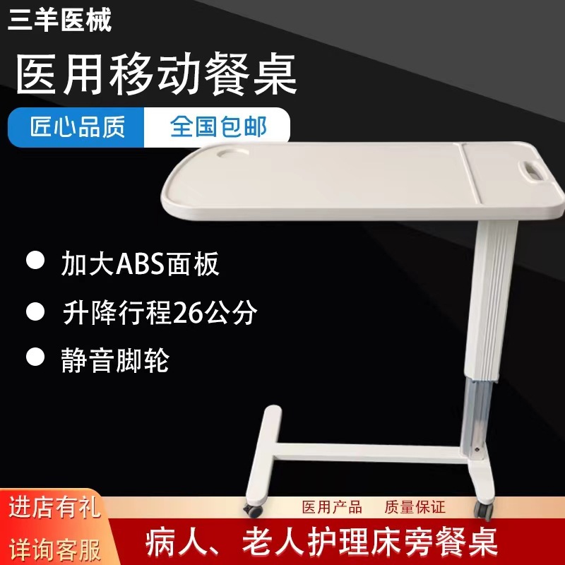 Больничная койка Подвижный обеденный стол Многофункциональный подъемный колесный пожилой пациент Луна над прикроватным обеденным столом для кормления
