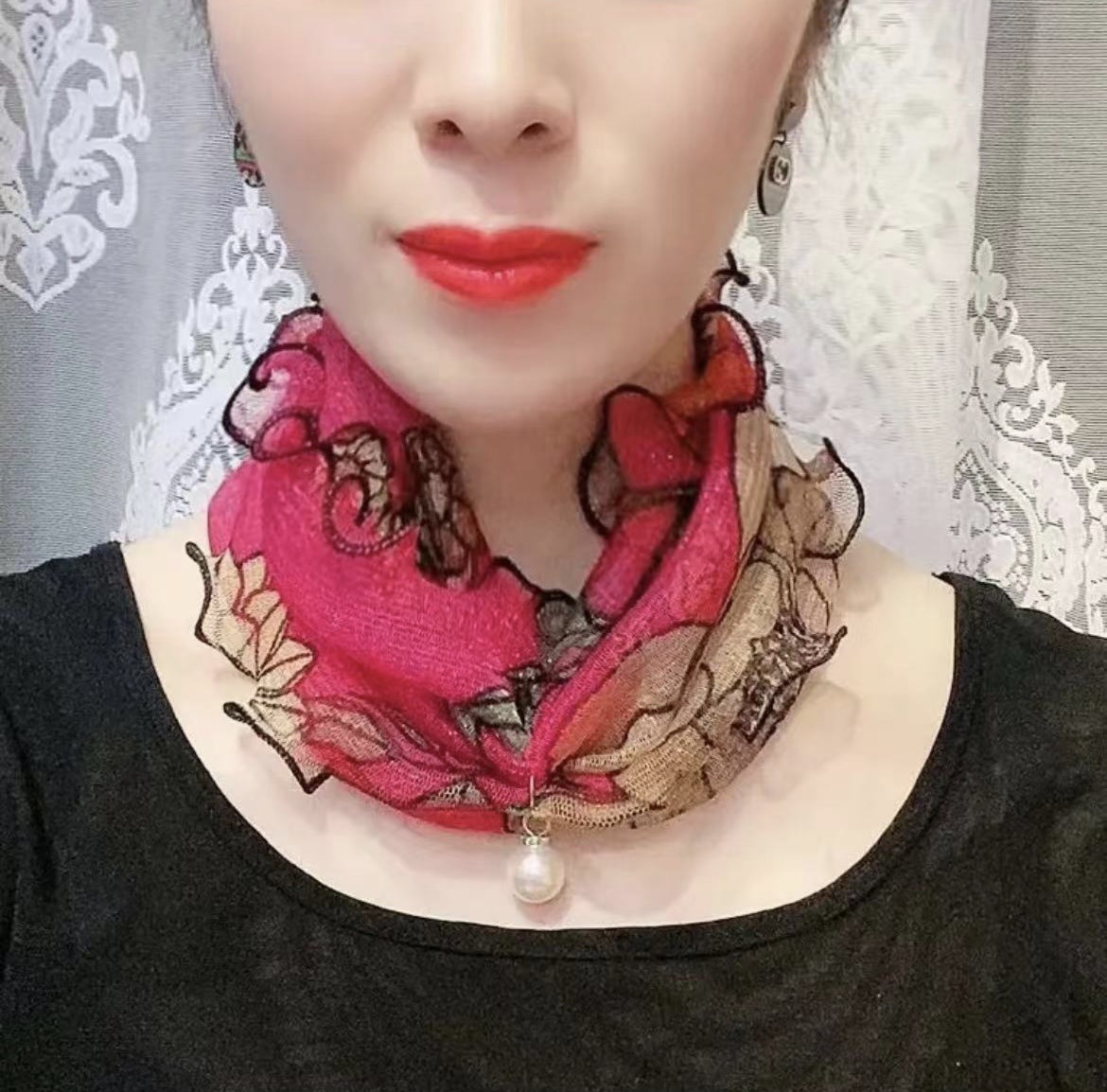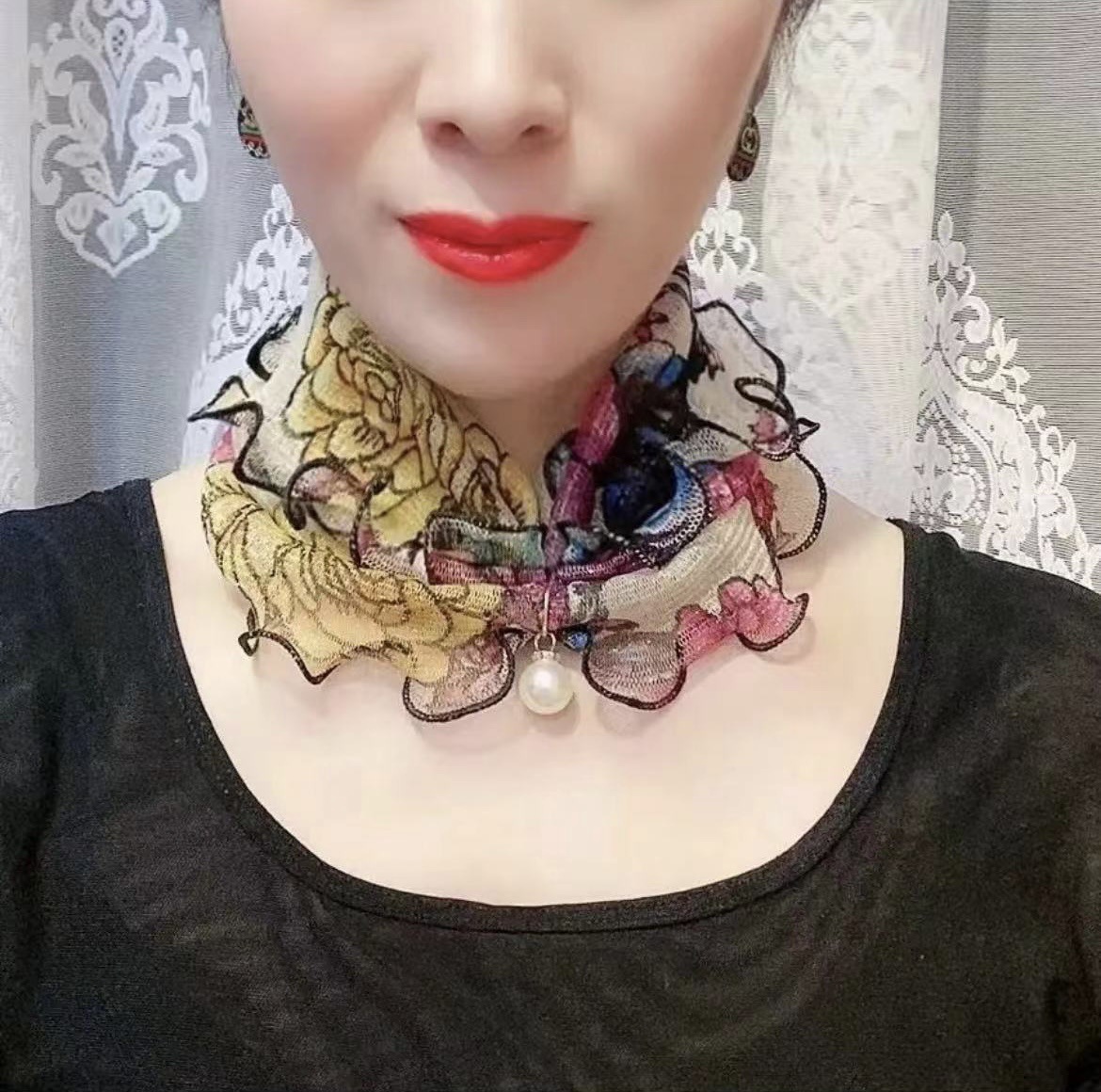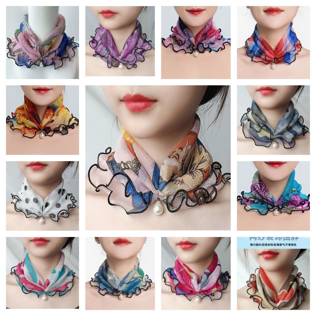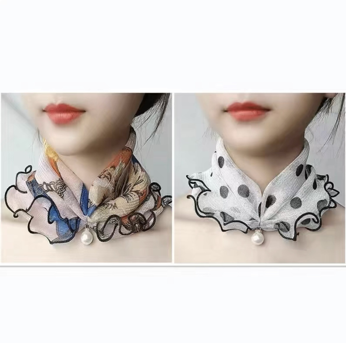Водолазка с жемчужной сеткой в Корейском стиле, маленький шарф, женский воротник, шелковый шарф, весенне-осенний Тонкий Модный Универсальный декоративный шарф